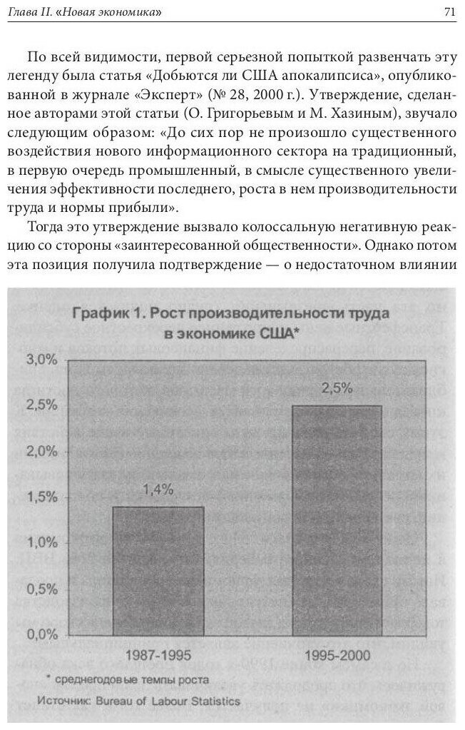 Книга представляет интересный взгляд на «новую экономику» США, предрекая ей болезненный кризис, который отразится на всех остальных странах. В книги освещаются слабости финансовой системы США и подробно рассматривается мифичность экономического благополучия данной страны, которое основано на манипуляциях с мировой финансовой системой. Книга интересная, факты подкреплены цифрами. В общем и целом, я рекомендую для расширения кругозора, несмотря на то, что она написана 20 лет назад.