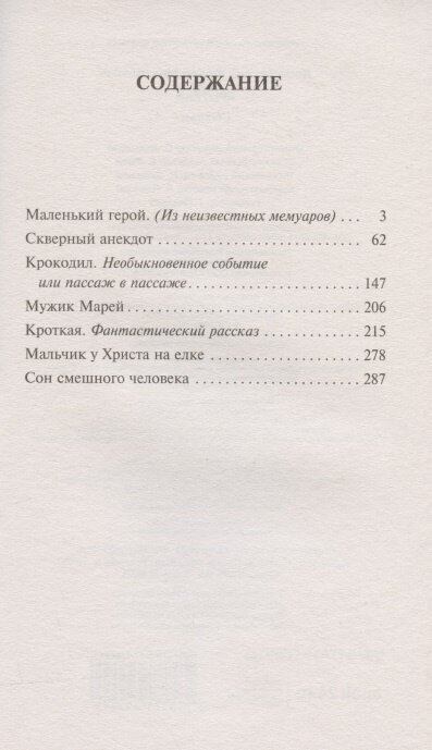 Когда покупала не заметила, что это сборник, но это не плохо, а даже лучше, можно познакомиться с другими произведениями Фёдора Михайловича. Самое трогательное и одновременном грустное —\" Мальчик у Христа на ёлке\". Оно короткое, но в нём рассказывается о безразличном обществе, а это частично актуальная сейчас тема. \"Кроткая\" закончилась печально, но смотря на рассказ глазами мужа, всё равно можно заметить, что он пытает себя оправдать, хоть какими-то моментами принимает свою вину