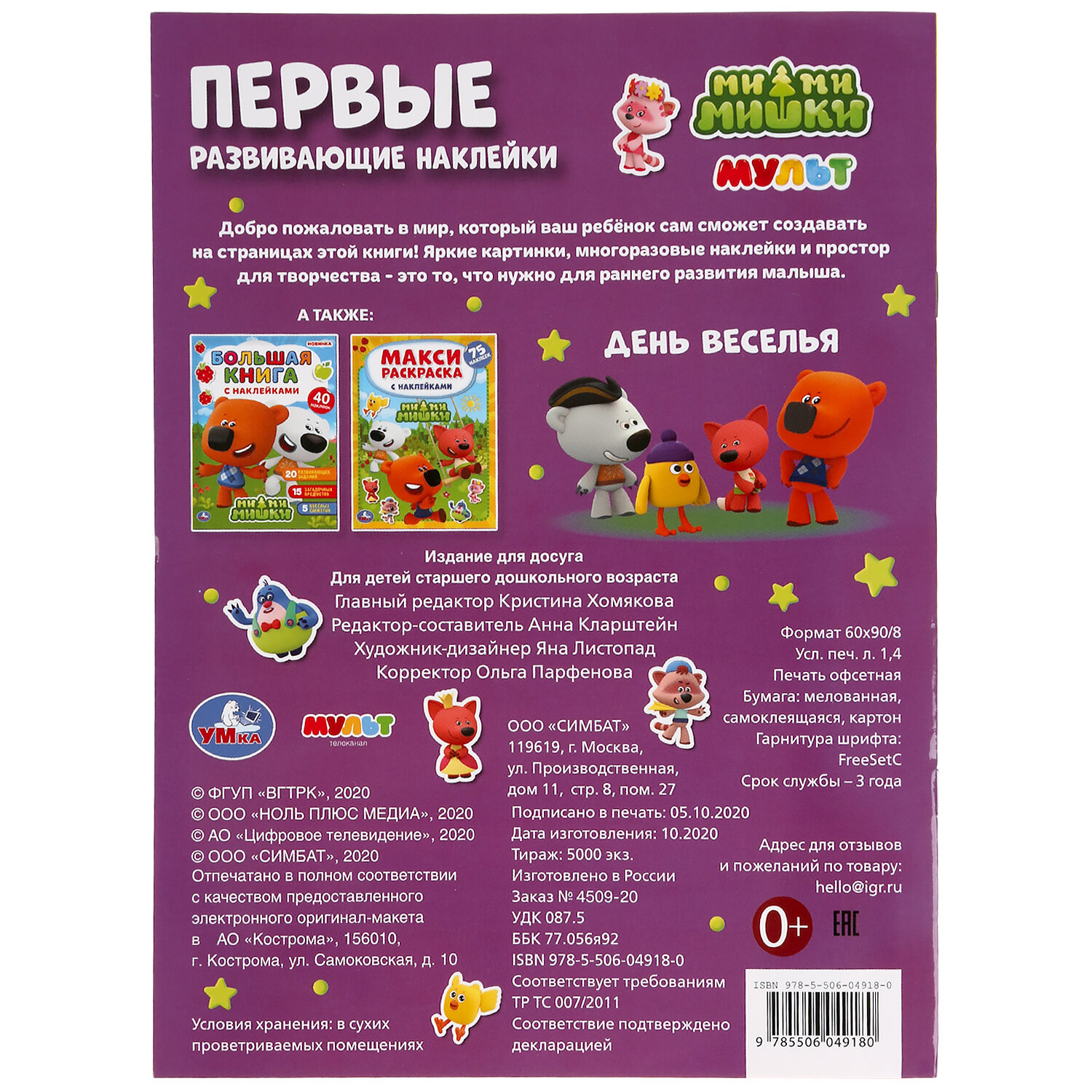 Сервис сравнения цен СкидкаГИД предлагает сравнить цены на товар «Книга: "УМКА". ДЕНЬ ВЕСЕЛЬЯ. МИ-МИ-МИШКИ. ПЕРВЫЕ РАЗВИВАЮЩИЕ НАКЛЕЙКИ. 210Х285ММ8 СТР.+ 50 НАКЛ. в кор50шт (Кларштейн Анна (редактор)); Симбат, 2021»