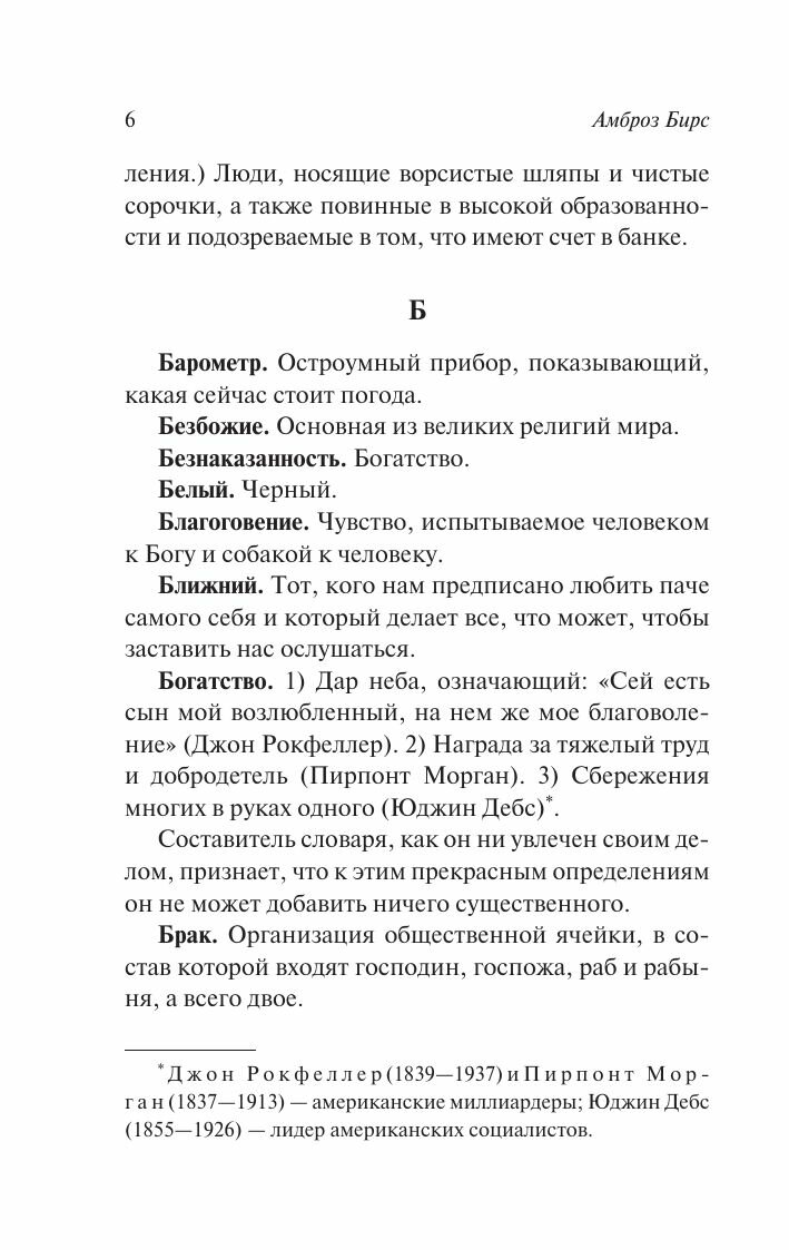 Хотелось купить обновлённый словарь, поскольку в этой редакции добавили ещё пару новых слов. Сам словарь блистательно саркастичен, к нему можно обращаться слова и снова, выучив наизусть особенно актуальные определения. Бирс поистине гениален в умении выразить тонкую острую мысль коротко и живописно. Книга пууухлая - добавили ещё разнообразные произведения, от которых порой стынет кровь, если читать ночью в одиночестве!..
