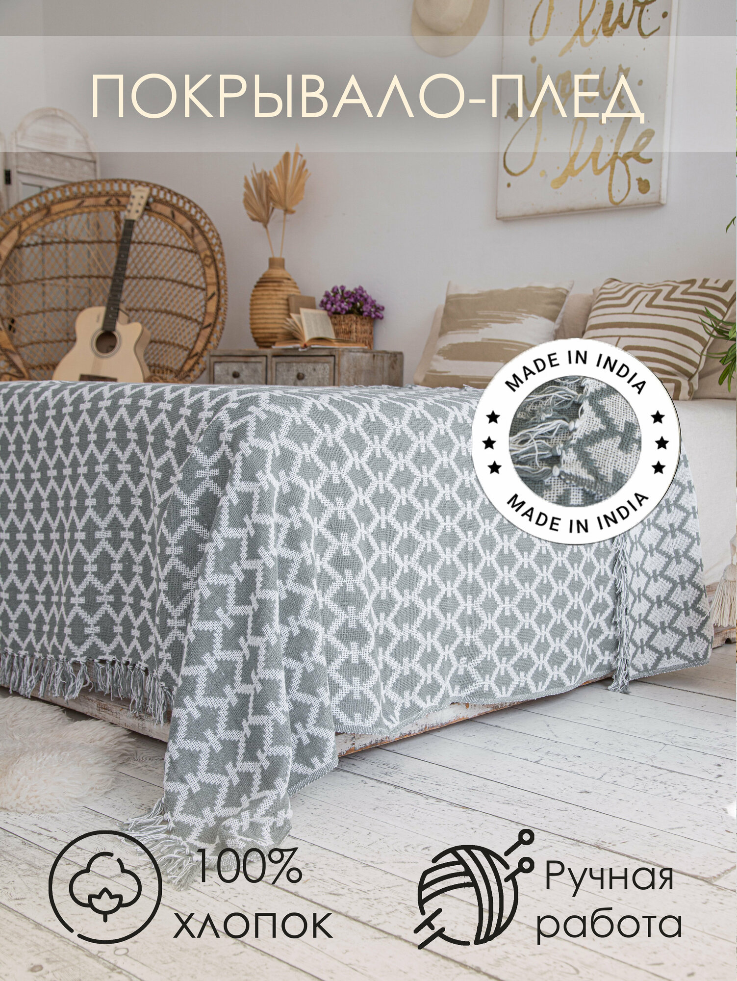 Индийское покрывало на кровать и диван из 100% хлопка ручной работы - незаменимая вещь в интерьере каждого дома для создания уюта и комфорта. Плотные тканые покрывала долго сохраняют первоначальный вид, их можно использовать в квартире или взять в дорогу. Яркие насыщенные цвета станут стильным акцентом в любом интерьере, а покрывала мягких приглушенных оттенков внесут приятное разнообразие в обстановку. Бахрома на покрывалах в размере 180х220 см расположена с четырех сторон. Покрывало в прозрачной упаковке из полиэтилена на молнии станет отличным подарком. Состав: 100% хлопок "soft-touch", плотность: 450 г/кв.м, производитель: Индия. При первоначальной стирке покрывало может дать усадку - это связано с технологическими особенностями производства.