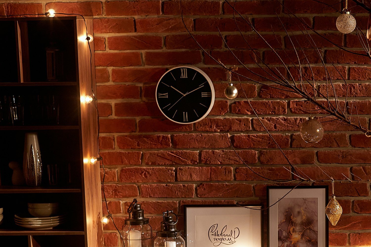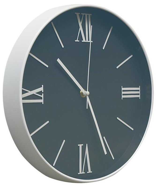 Настенные часы благодаря лаконичному дизайну и монохромной палитре гармонично дополнят практически любой современный интерьер. Часы отличаются большим размером, циферблат, заключенный в рамку, выполнен в белом цвете, крупные римские цифры и стрелки — в контрастном белом. Благодаря этим факторам показания часов будут хорошо читаться даже на удалении - например, из противоположного конца комнаты. Прибор изготовлен из прочного качественного пластика, не нуждается в регулярном заводе - работает от батарейки.