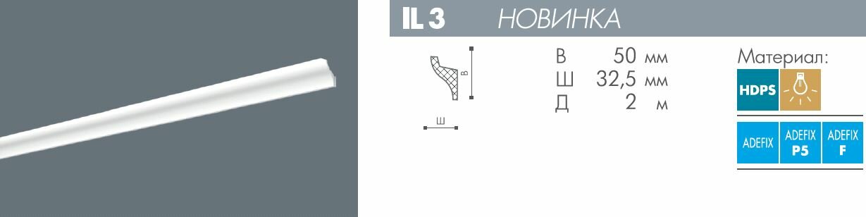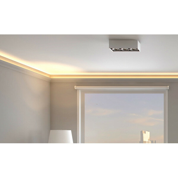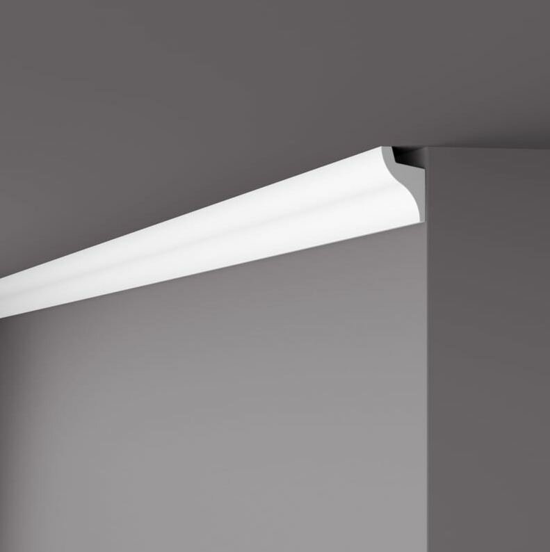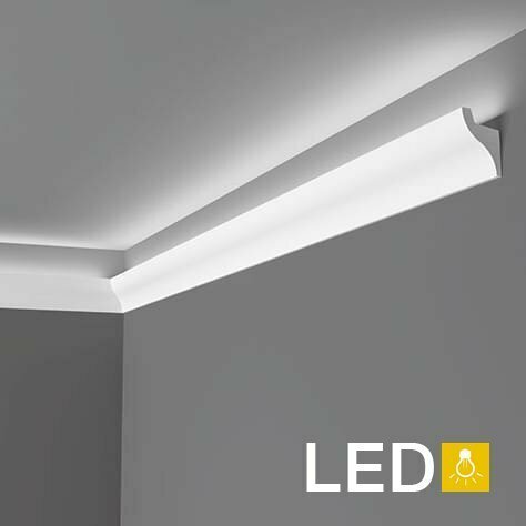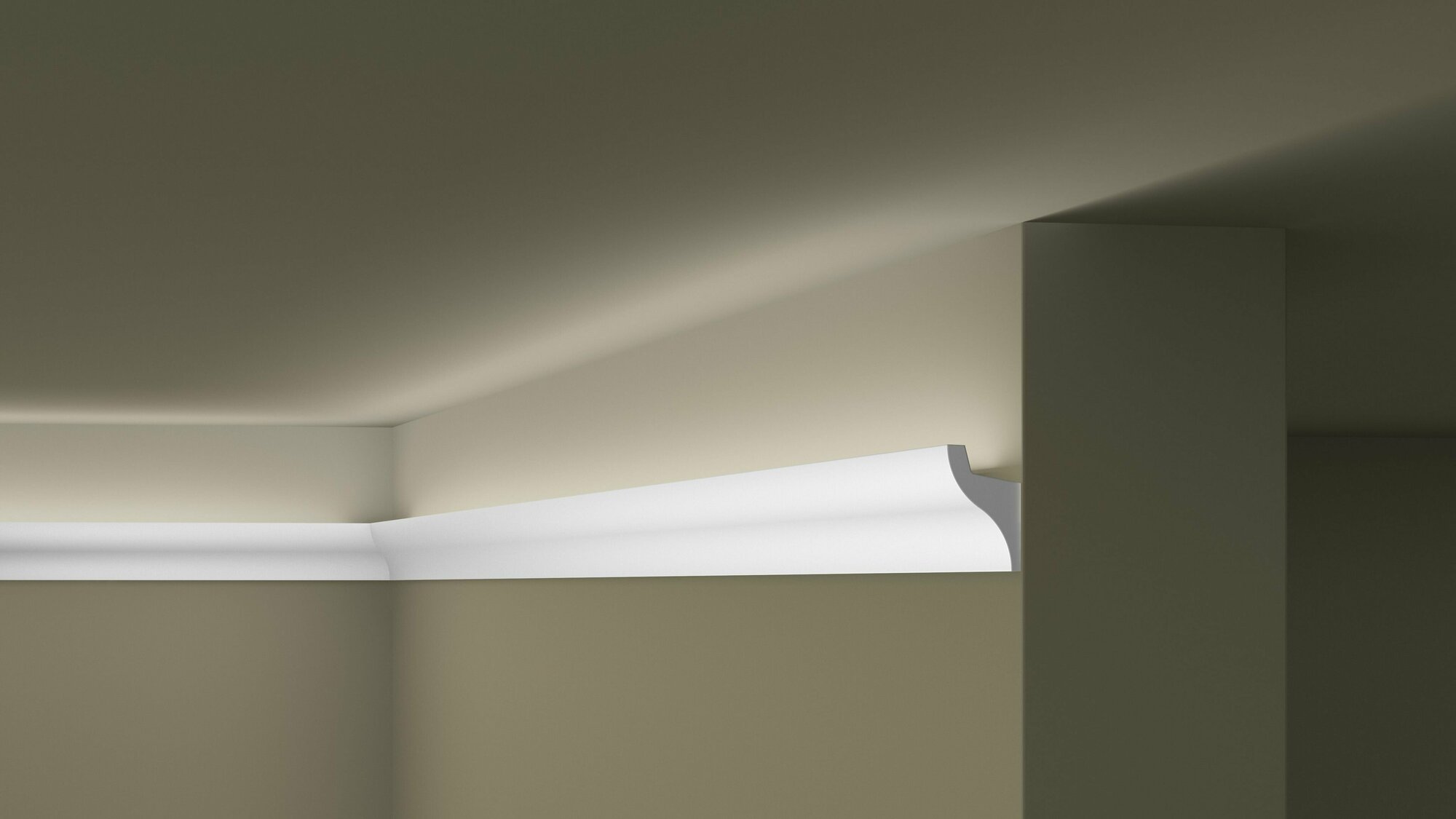 Плинтус потолочный ударопрочный с лентой для отражения подсветки LED IL3 используется для устройства подсветки потолков, в том числе натяжных. Поможет не только выгодно подчеркнуть выбранный стиль оформления интерьера, но и замаскировать неровный переход между стеной и потолком. Изделие изготовлено из ударопрочного полимера. Специальная лента отражает LED-подсветку и исключает просвечивание сквозь материал галтели. Плинтус обладает высокой плотностью и небольшим весом, легко разрезается на куски требуемой длины и не крошится, что облегчает работу с материалом.