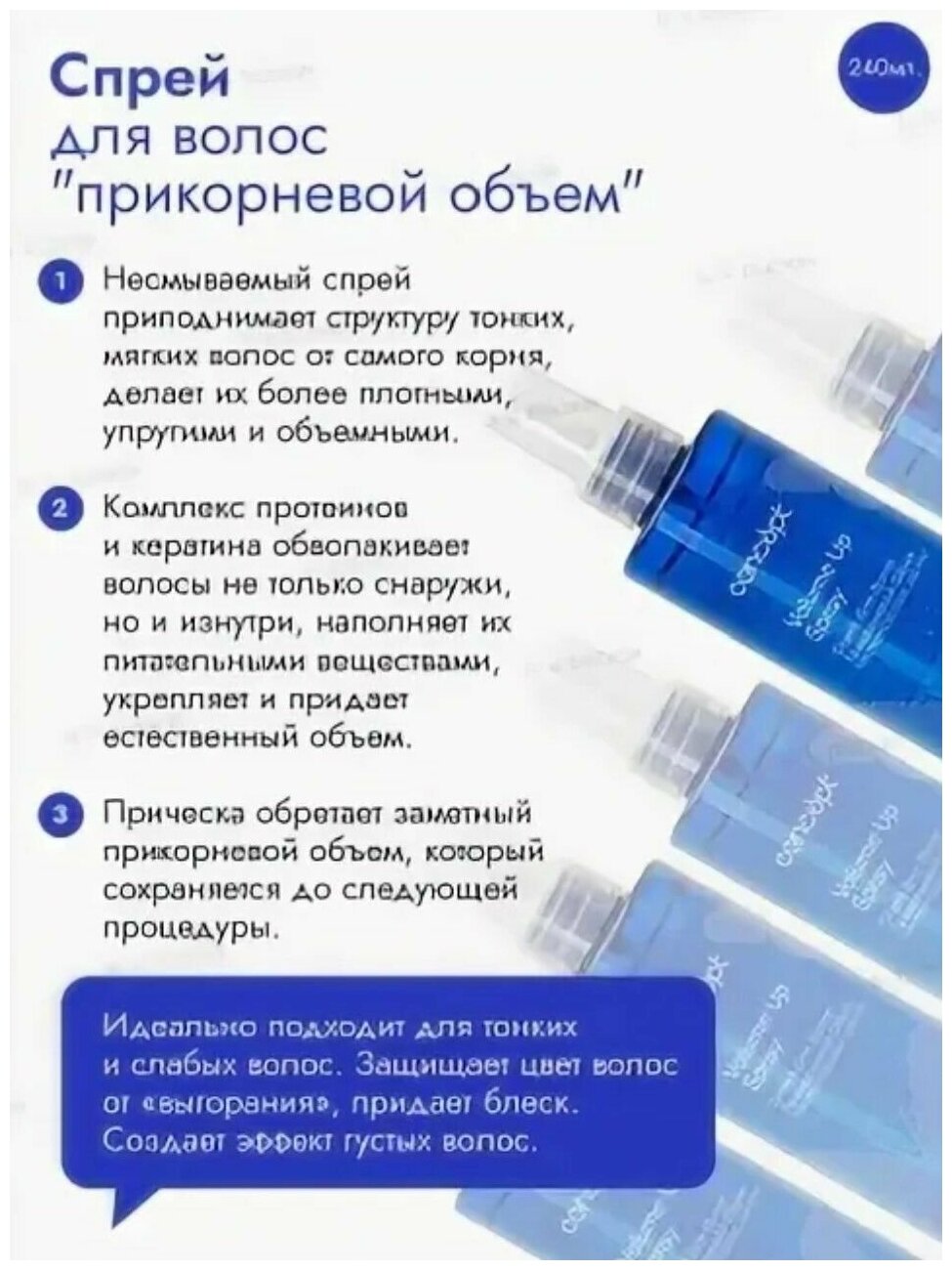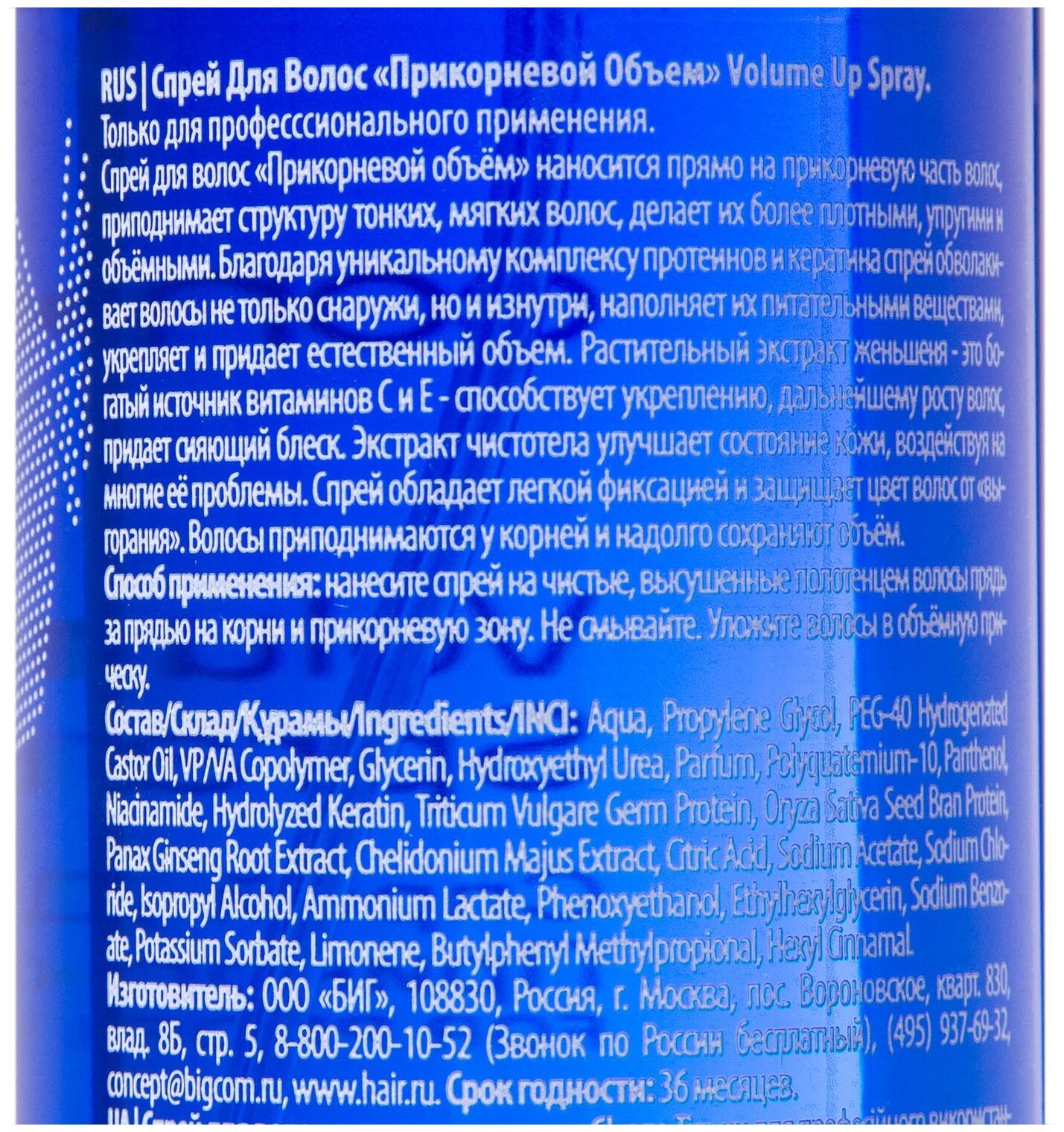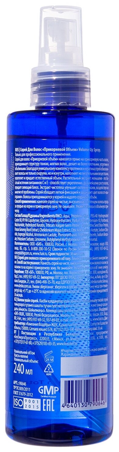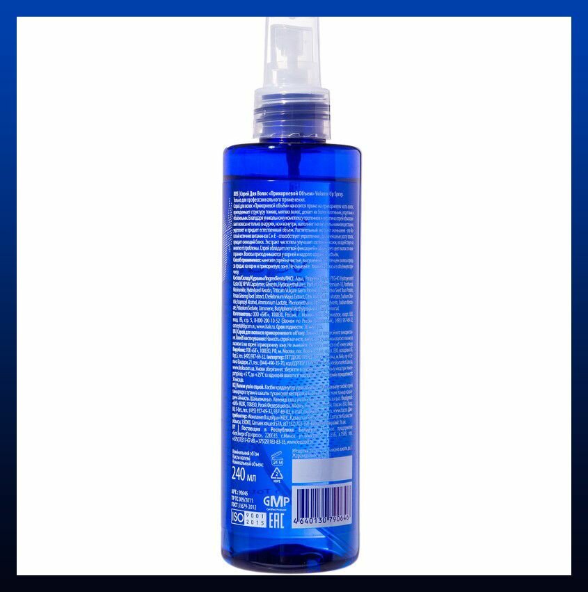 Способ применения: Нанесите спрей на чистые, высушенные полотенцем волосы прядь за прядью на прикорневую зону. Не смывайте. Уложите волосы в объемную прическу.