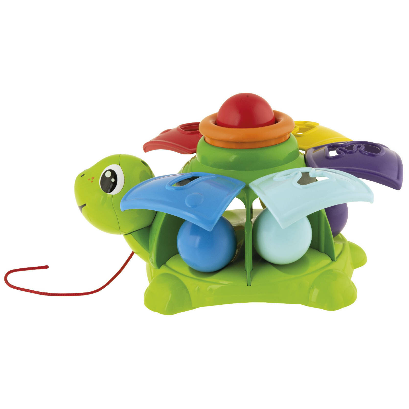 Потрясающая черепаха, много интересных занятий! Черепаха - это игрушка на веревке с забавными мелодиями, которые стимулируют движение детей. Его 5 цветных шариков доставят дополнительное удовольствие вашим малышам, которые должны просунуть их через отверстие в панцире черепахи. Нажав оранжевую кнопку все двери откроются одновременно, и шарики вырвутся наружу. Эта супер веселая и увлекательная игрушка учит первым числам, причинам и следствиям, а также стимулирует различные ручные действия.