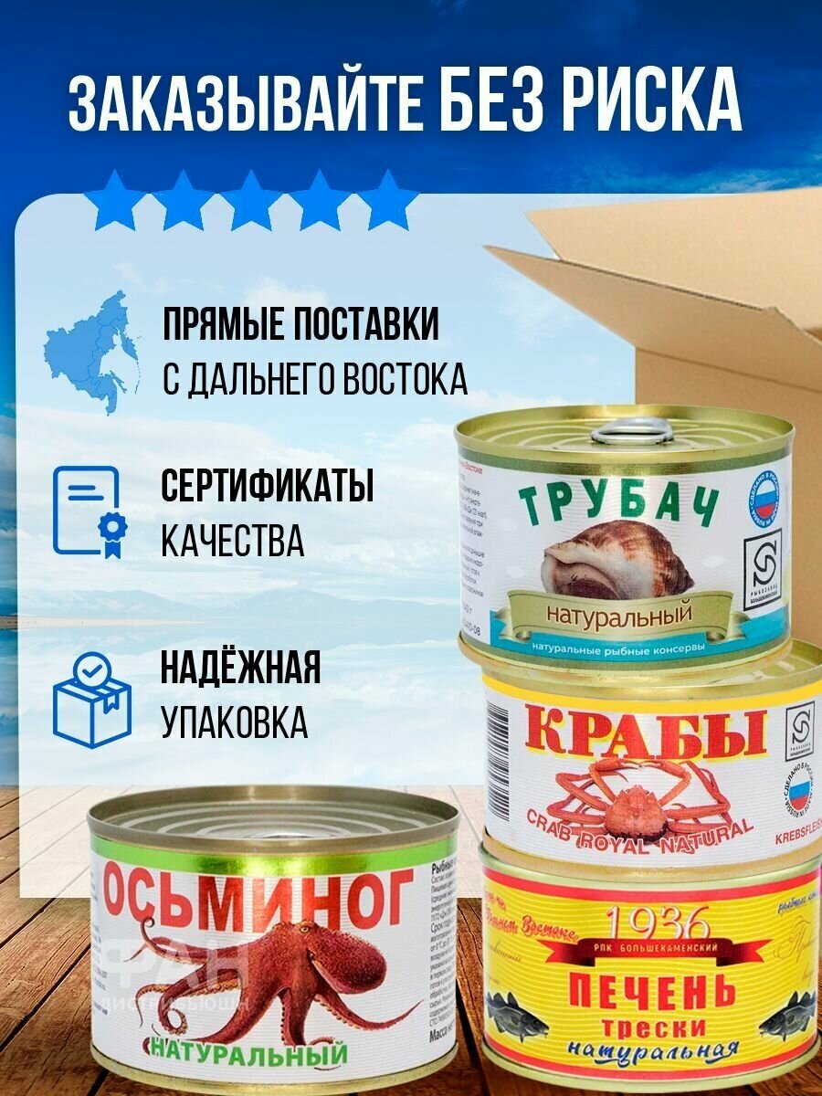 Рыбозавод Большекаменский Консервы Гребешок натуральный 200 г