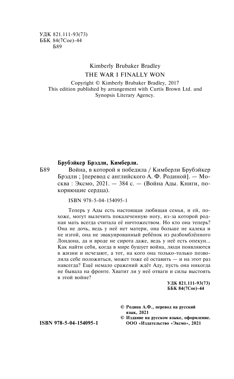 Война в которой я победила (Брубэйкер Брэдли Кимберли); ООО "Издательство "Эксмо", 2021