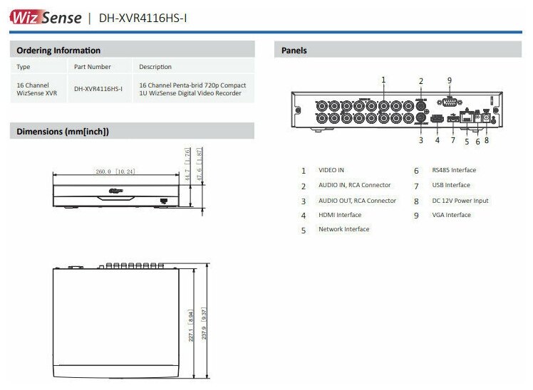 - Поддерживает видеовходы HDCVI / AHD / TVI / CVBS / IP