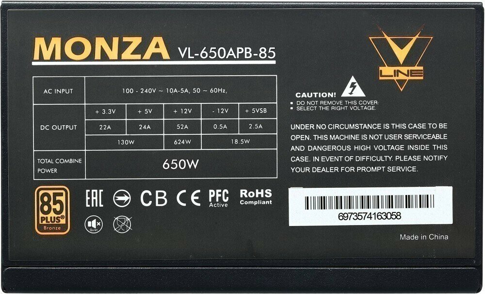 Блок питания FORMULA MONZA 650Вт 120мм черный retail VL-650APB-85