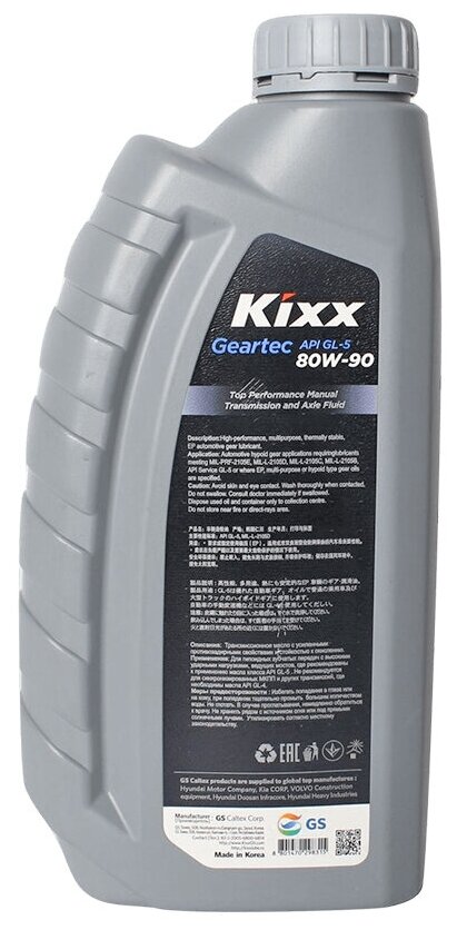 Высококачественное полусинтетическое трансмиссионное масло, с усиленными термостабилизирующими и противозадирными свойствами. Рекомендовано к применению в автомобильных гипоидных трансмиссиях с высокими ударными нагрузками.применение: KIXX GEARTEC GL-5 Рекомендуется для автомобильных трансмиссий с гипоидными зубчатыми передачами, подвергающихся высоким ударным нагрузкам, требующих применения смазочных материалов стандарта MIL-PRF-2105E, MIL-L-2105D, MIL-L-2105C, MIL-L-2105B, API GL-5. Рекомендованы для автомобильных трансмиссионных агрегатов и узлов, работающих в условиях предельных нагрузок, для которых требуется максимальная степень защиты деталей трансмиссии. Не рекомендуются к применению в ручных коробках передач переднеприводных трансмиссий, если автопроизводитель требует применения смазочных материалов класса API GL-4 и предостерегает от использования трансмиссионных масел класса API GL-5.