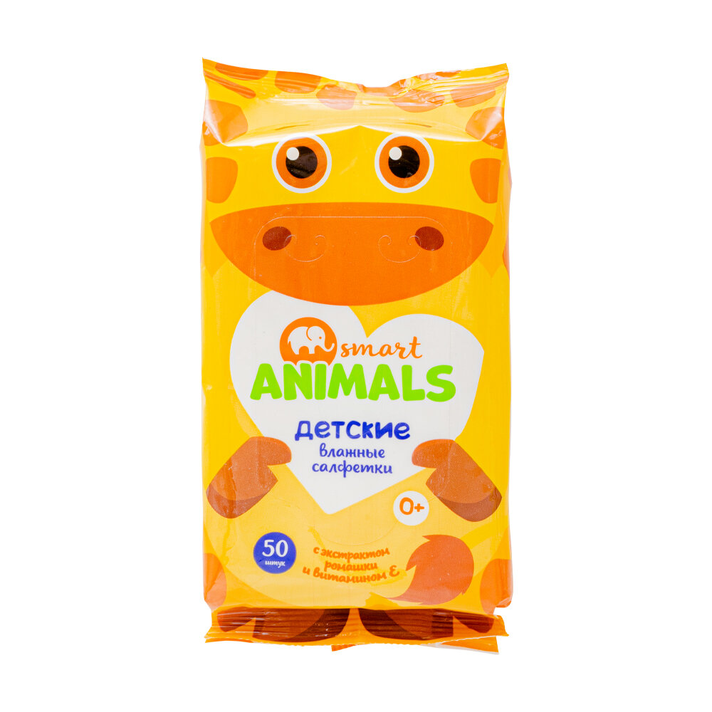 Влажные салфетки Smart animals детские с ромашкой и витамином Е mix 50 шт Без бренда