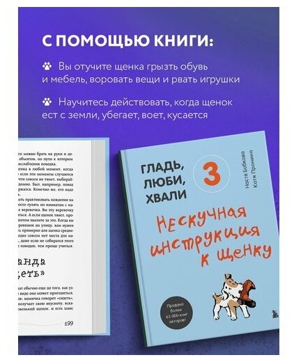 Это лучшая книга про щенков! Я читал все части "Гладь, люби, хвали", из них я почерпнул информацию, без которой вряд ли бы смог справиться со своими не очень адекватными четвероногими))