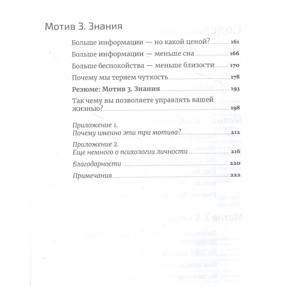 Почему нам так важно, что подумают о нас коллеги или родственники? Зачем мы постоянно сравниваем себя с другими, но при этом мечтаем выделяться из толпы? Для чего следим за новостями и не вылезаем из социальных сетей? Анджела Ахола, доктор психологии из Швеции, считает, что человеком с незапамятных времен движут три мотива: мы стремимся устанавливать отношения, повышать свой статус в иерархии и получать новые знания. Эти потребности, которые когда-то давно помогали Homo sapiens выжить, так сильны, что определяют наши мысли и поведение, даже когда мы этого не осознаем. В своей книге доктор Ахола объясняет, как увидеть скрытые мотивы за своими и чужими поступками, научит расставлять приоритеты, реалистично оценивать свои сильные и слабые стороны, покажет, как планировать карьеру, управлять мотивацией и вернуть контроль на поле собственной жизни. • Доктор психологии Анджела Ахола изучает причины поведения людей, их мотивацию. • В книге описаны три основных мотива, которые стоят за нашими поступками и решениями. • Автор объясняет особенности личности с точки зрения нейрохимии, генетики и психологии. • Практические советы позволят контролировать свое поведение и принимать правильные решения.