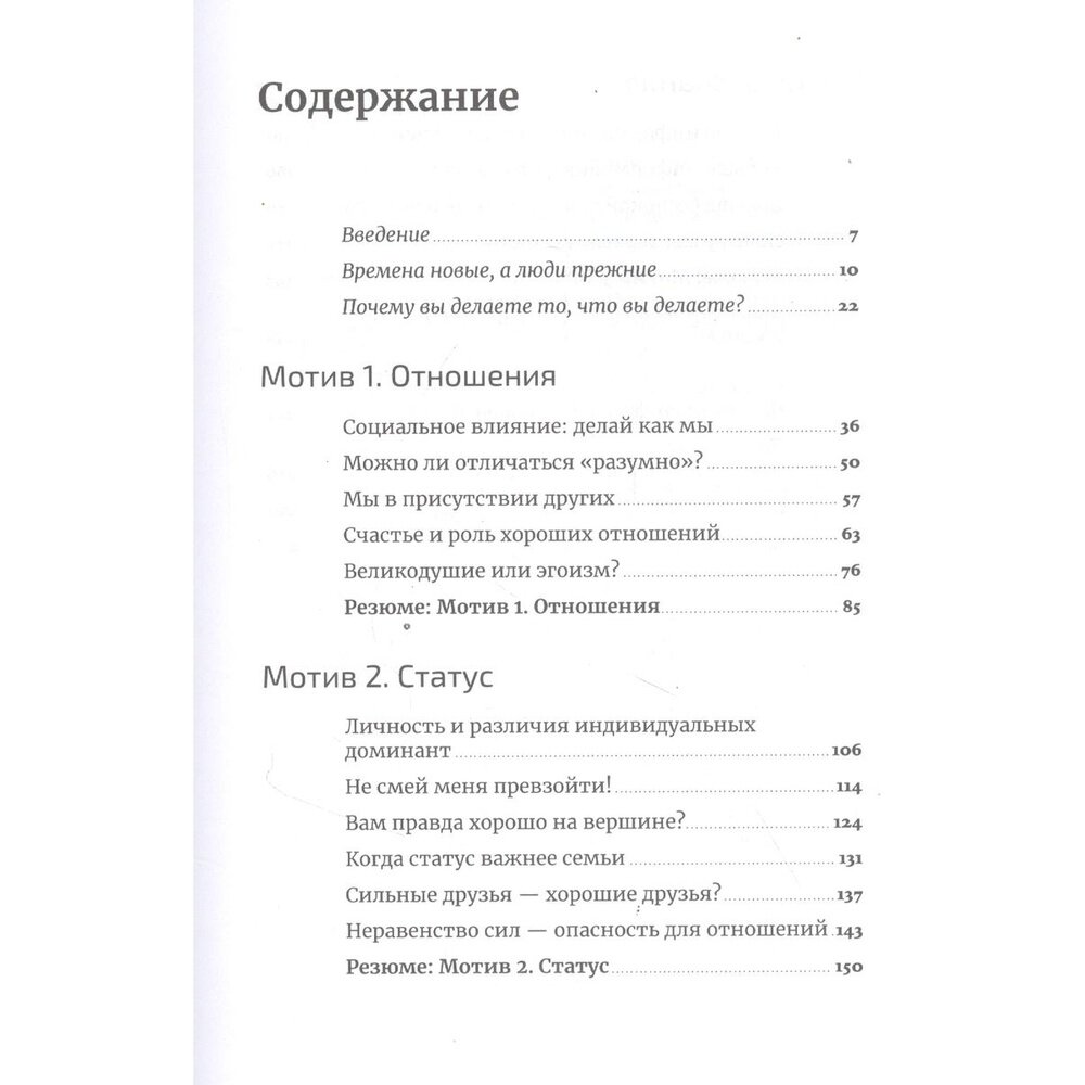 Интересная книга на казалось бы понятную тему. Не нашел ничего из разряда очень выдающегося, но было интересно читать на тему близкого для меня вида мотивации. Наше поведение определяется целым набором скрытых мотивов, и здесь вы можете узнать подробно про три из них (как считает автор, эти три мотива одни из самых важных, собственно почему и была написана эта книга) - отношения, статус, знания. Ну а если вы еще не знакомы с химическими процессами мозга, порожденными нашим поведением, то вам будет вдвойне интересно, так как автор очень доступно всё объясняет.