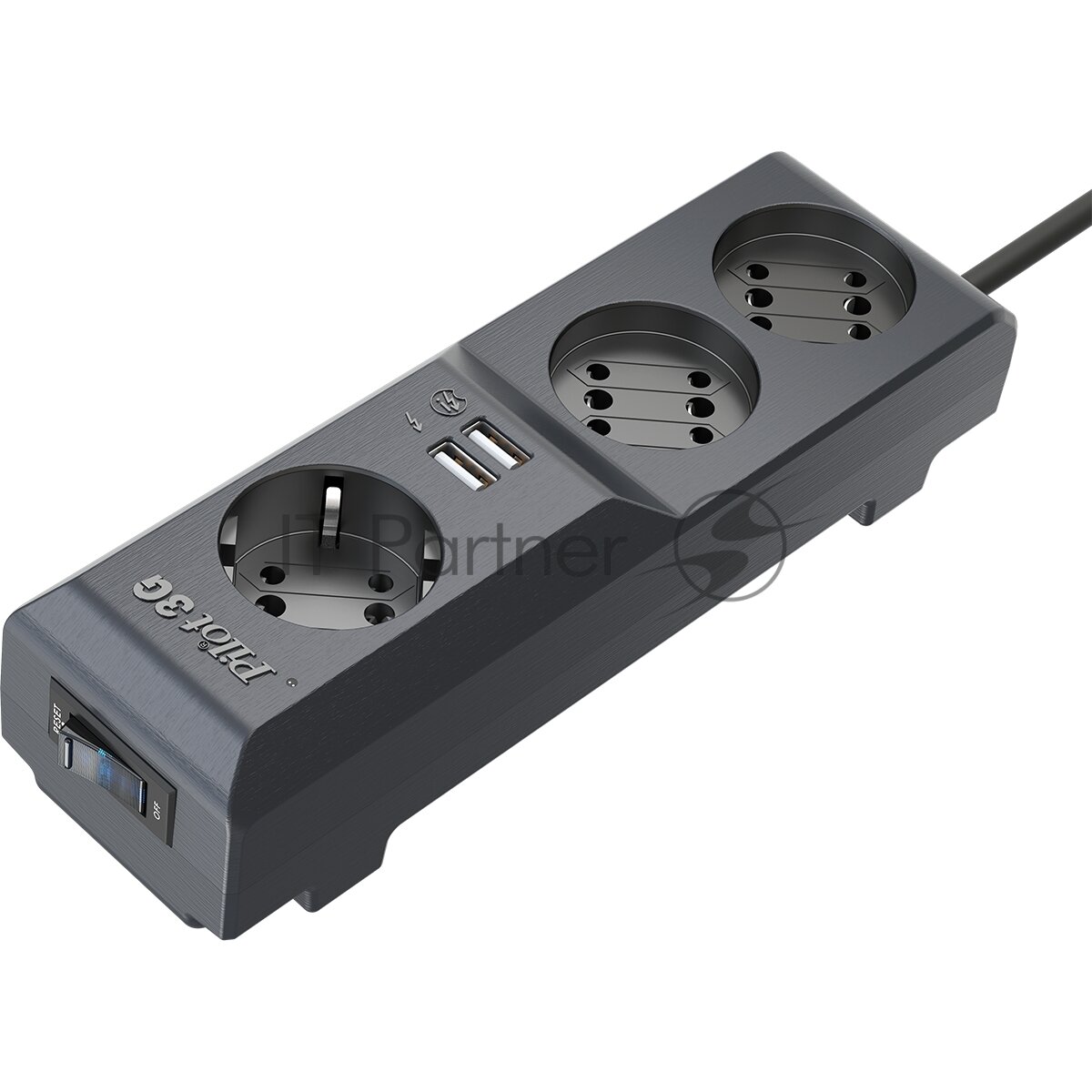 Модель: Surge protector Pilot 3G 3xGP euro outlets (графитовый)