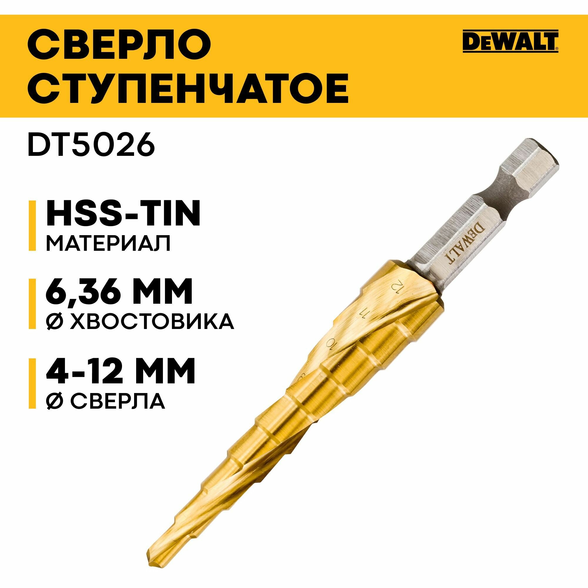 Сверло ступенчатое DEWALT EXTREME IMPACT 4-12 мм EXTR IMPACT 4-12мм DT5026 (золотой)