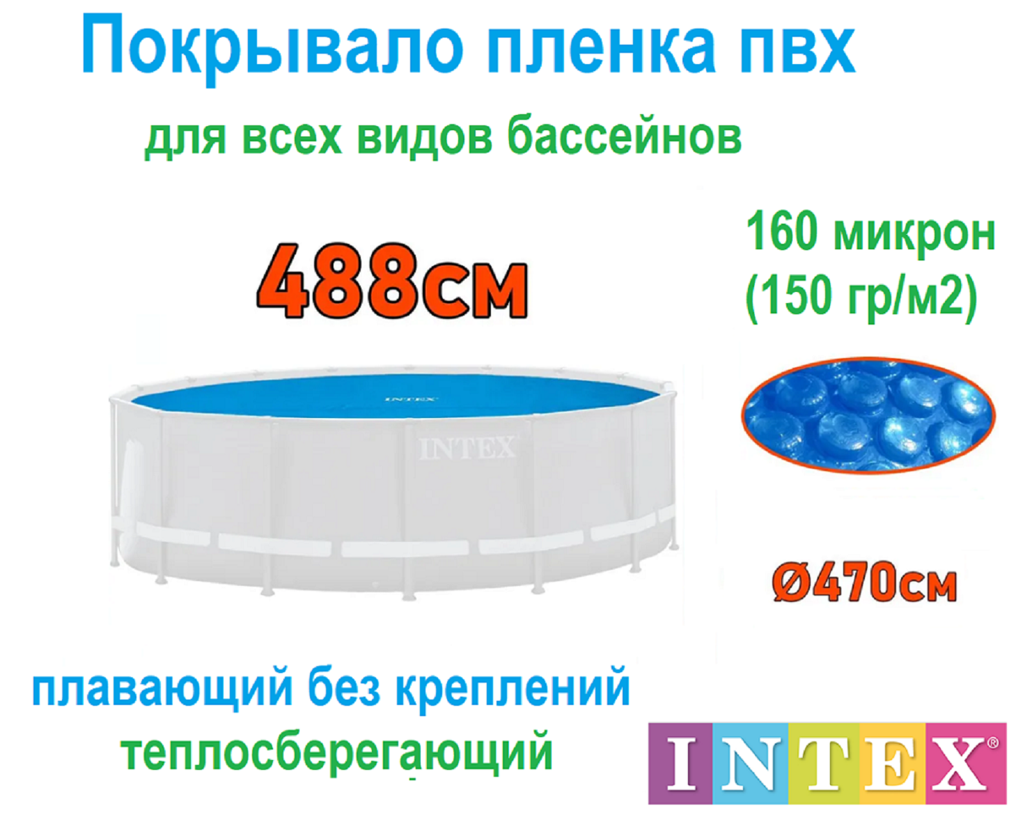 Плавающее покрывало Intex 29024 / 59956 4.88 м для бассейна, 488 см 29024 (голубой)