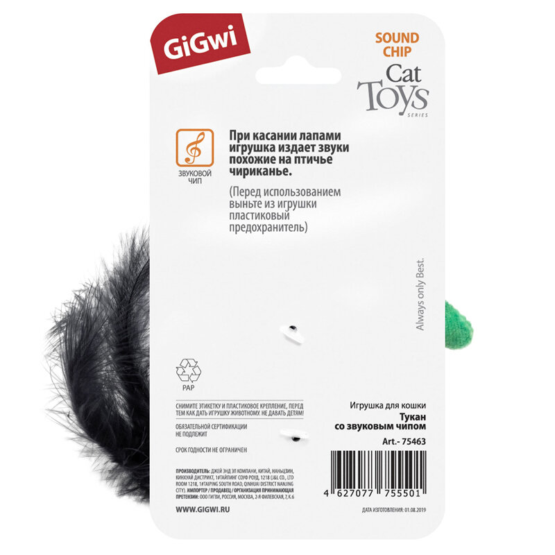 - Игрушка для кошек GIGWI (Гигви) "ТУКАН" со звуковым чипом издает звук при касании (75463) LIVE Обзор