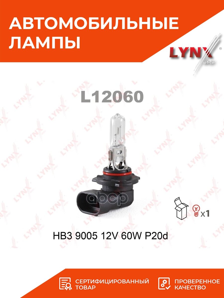 Лампа автомобильная галогенная LYNXAUTO HB3 12В 1шт L12060