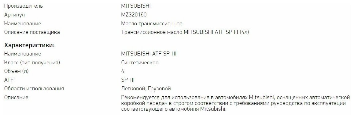 Оригинальное трансмиссионное масло, разработанное для применения в механических коробках передач автомобилей MITSUBISHI.