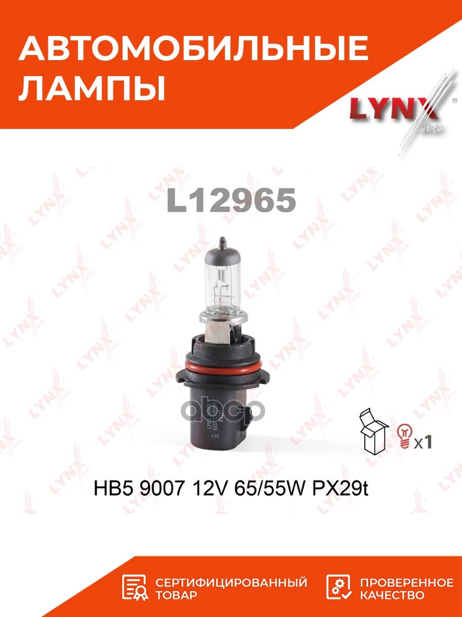 Лампа автомобильная галогенная LYNXAUTO HB5 12В 1шт L12965