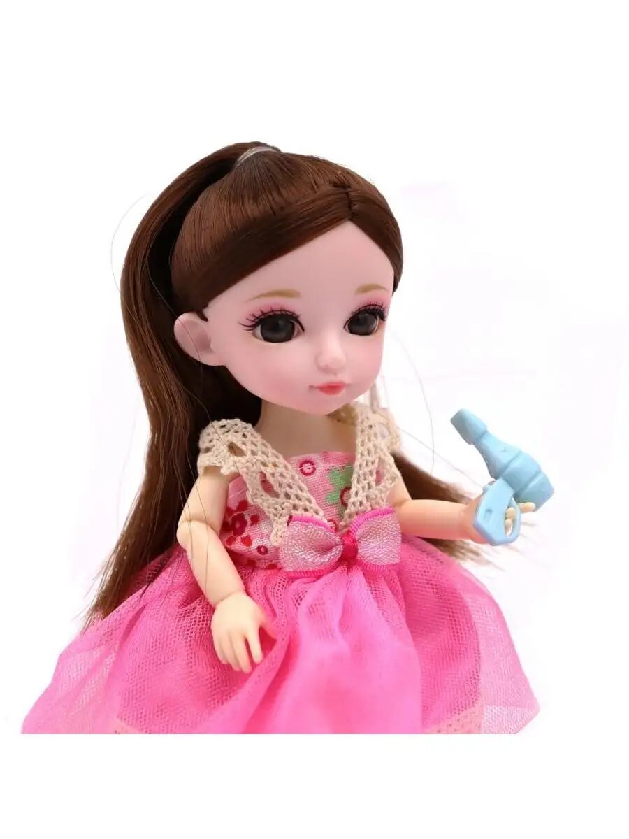 Малышка Лили – это очаровательная куколка с настоящими живыми глазами. У нее шарнирные ручки и ножки с 12 точками артикуляции. Размер куколки 16 см. Малышка Лили одета в красивое розовое платье. Также в комплект входит туалетный столик с зеркалом, стул и 6 аксессуаров.