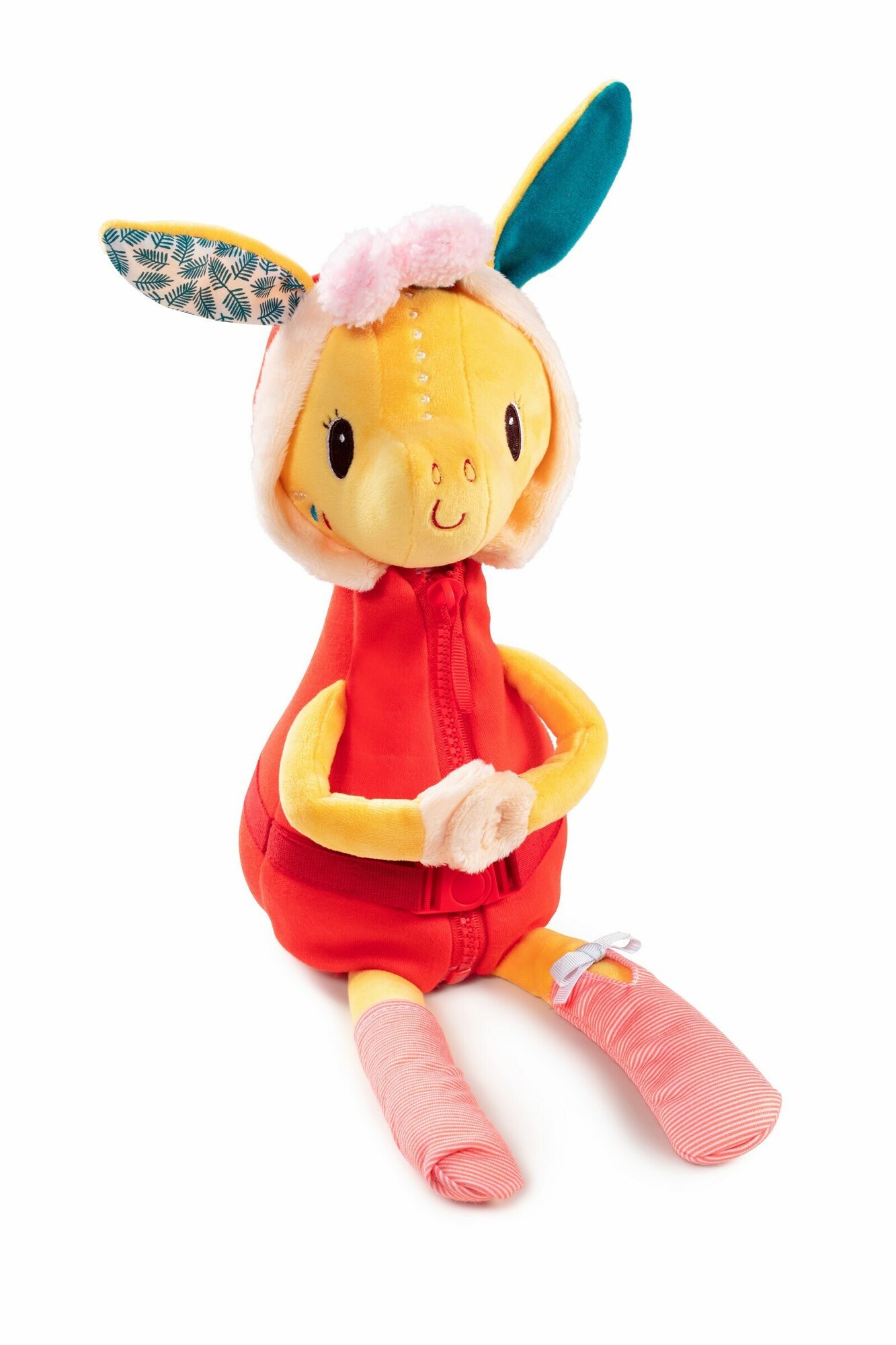 Игрушка стимулирует мелкую моторику и является важным помощником в обучении ребенка самому одеваться и раздеваться.