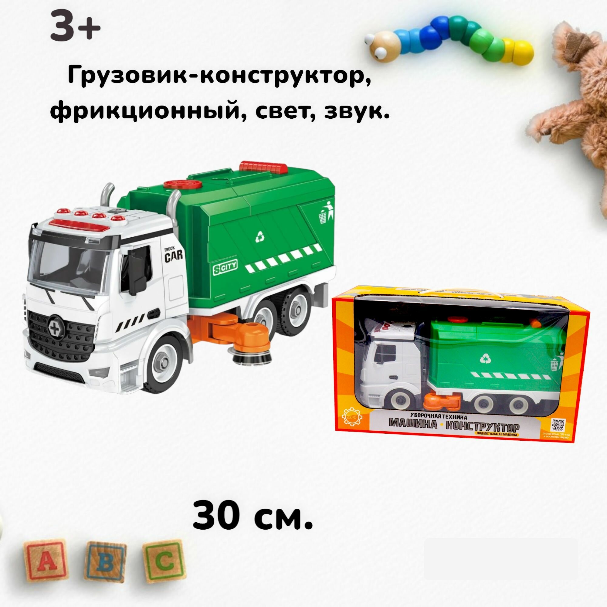 Уборочная машина-конструктор - отличный подарок для любого ребенка. Игрушку можно разобрать и собрать заново при помощи отвертки, входящей в комплект. Фрикционный механизм, световые и звуковые эффекты делают игру реалистичной. Тщательно продуманный дизайн и детализация еще больше погружает в атмосферу. Такая машина станет отличным дополнением к остальному игрушечному транспорту. С помощью нее ребенок с удовольствием познакомится с работой коммунальных служб на практике.
