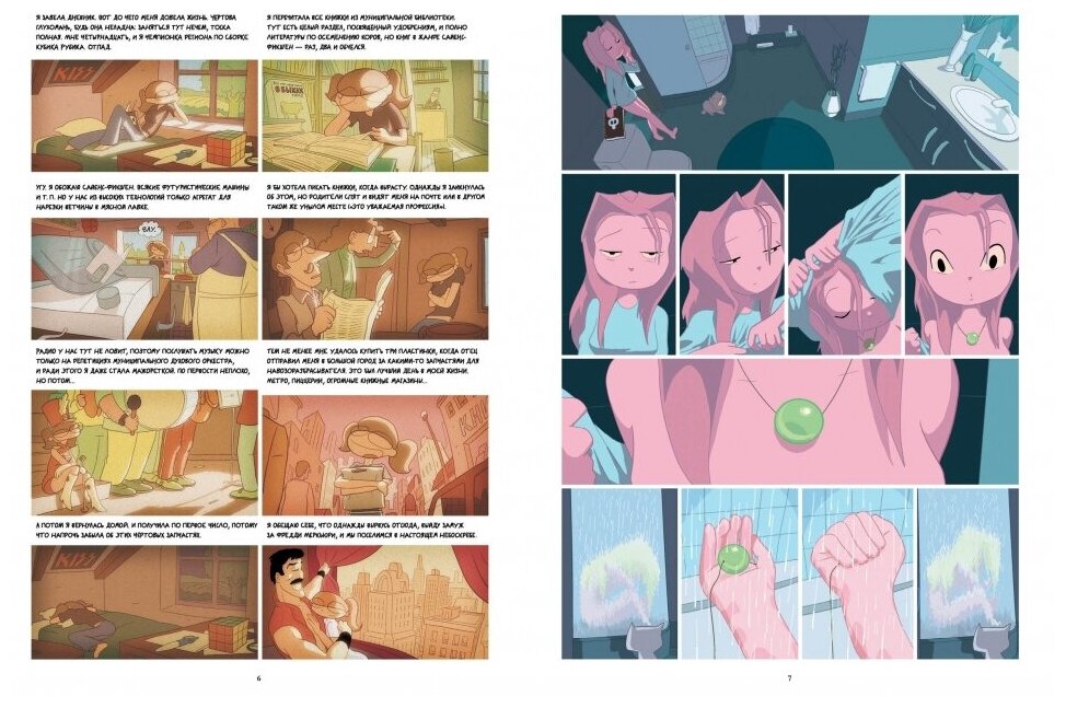 Браво, Лу! Это мои первые в жизни комиксы – купила дочери подруги и взглянула одним глазком, чтобы прочесть от корки до корки. Честно, считала комиксы – пустым чтением, да и чтением ли? Ошиблась и в этом случае приятно признать ошибку). Автор, конечно, лихо закручивает: и пожар, и беременность и первый поцелуй - жизнь Лу и ее семьи бурлит. В этой книжке Лу находит дневник юности своей матери, из которого мы узнаем многое о ней - нонконформистке, свободолюбивой, смелой, сильной женщине, которая была такой с ранних лет. Она копается в прошлом семьи, пытаясь понять почему ее родители так огрубели душой и так к ней относятся. И это отнюдь не бесполезное занятие, а путь к осознанию самой себя и тех ситуаций, в которые ты попадаешь. А то, как мама общается с Лу – если не пример для подражания, то уж точно пример дружелюбного и неравнодушного разговора с взрослеющей дочерью.