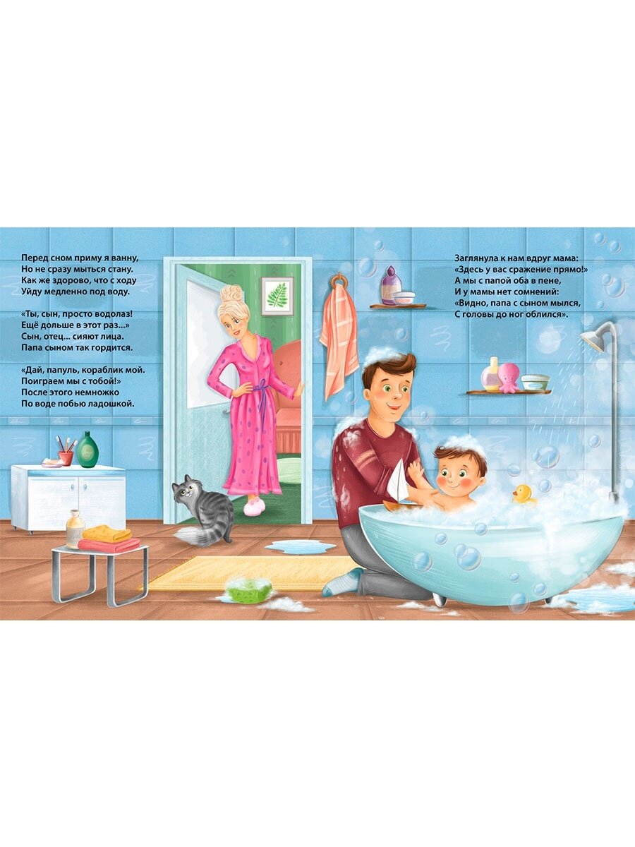 Книжка-картонка «ПАПИН ДЕНЬ» в стихах Евгения Сосновского познакомит вашего малыша с забавными историями про папу и его малыша-сорванца.