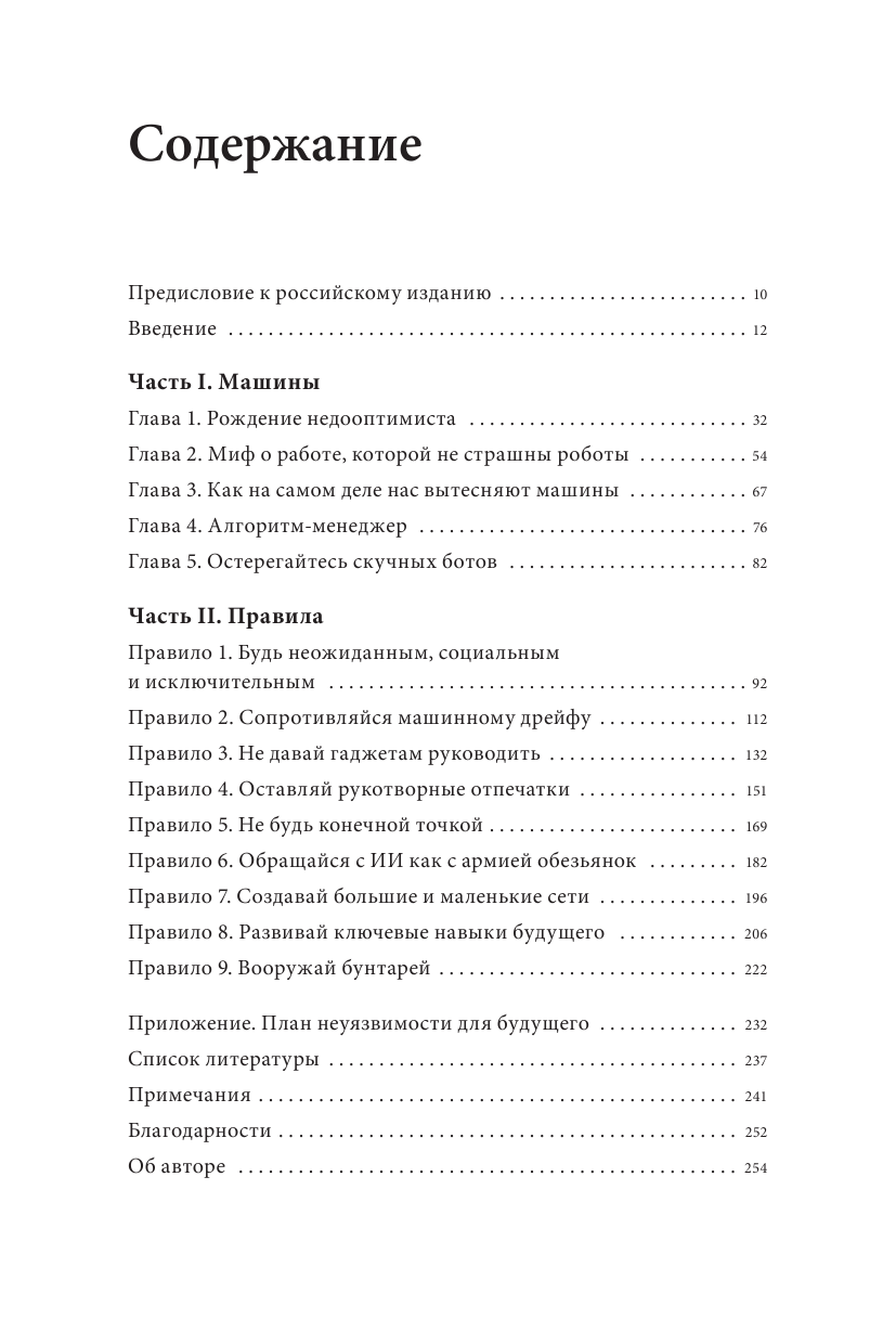 Надеюсь, что, дочитав эту книгу, вы разделите мое беспокои?ство по поводу ИИ и автоматизации, а также экономических, политических и социальных проблем, к которым они могут привести в будущем. Но еще я надеюсь, что вы почувствуете себя увереннее перед лицом этих проблем. Моя главная цель — убедить вас, что вы можете стать тем, кому не о чем беспокоиться, тем, кого его истинно человеческие качества делают незаменимым вопреки всем умениям и неумениям ИИ.