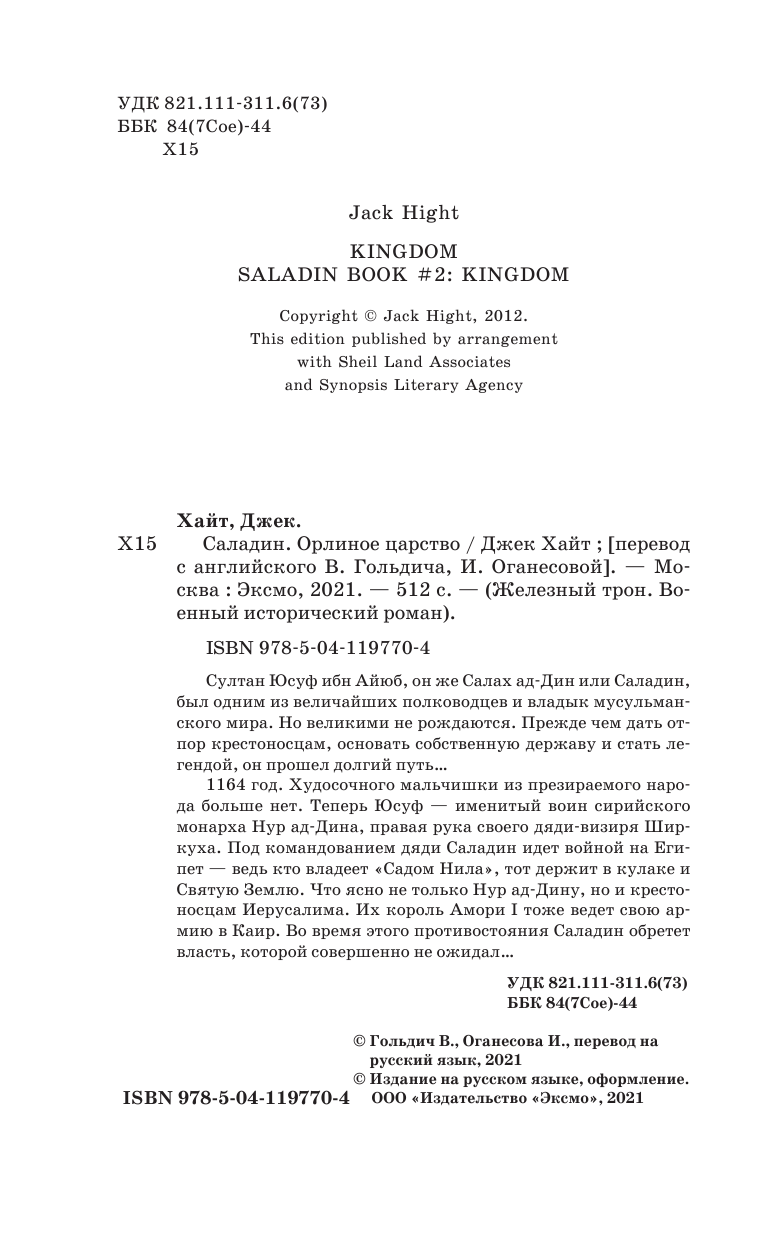 Книга: Саладин. Орлиное царство (Джек Хайт); Эксмо, Редакция 1, 2021