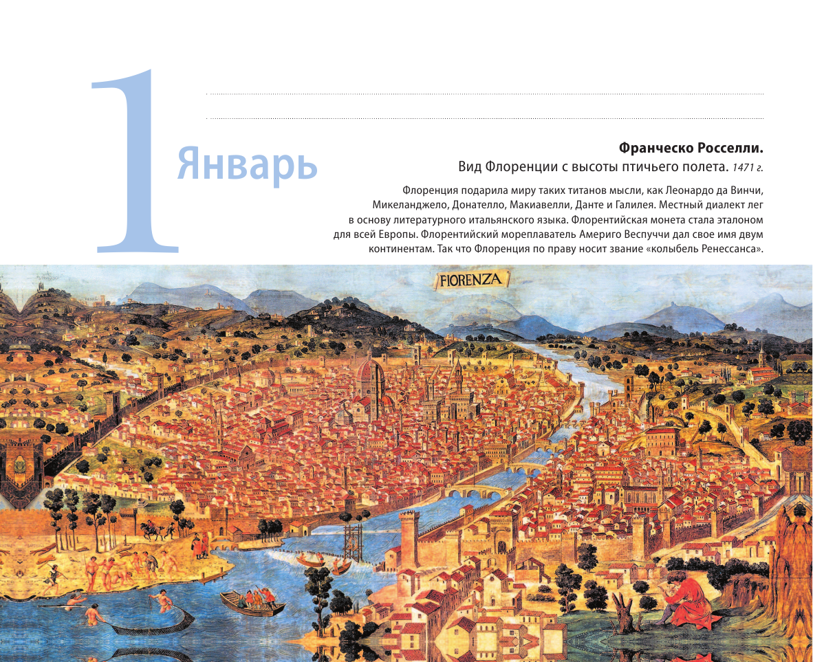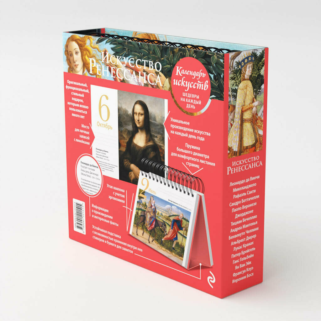 Вечный календарь «Искусство Ренессанса» из серии «Шедевры на каждый день» — это креативная инновация во Вселенной искусства. Календарь объединяет в себе достоинства художественного альбома, картинной галереи и путеводителя по изобразительному искусству.