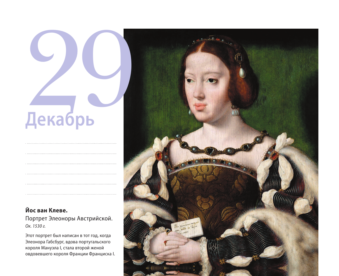 подарочных календарей «Шедевры на каждый день». И пусть утонченный и изысканный дух великих художников вдохновит вас на большие планы и смелые решения.