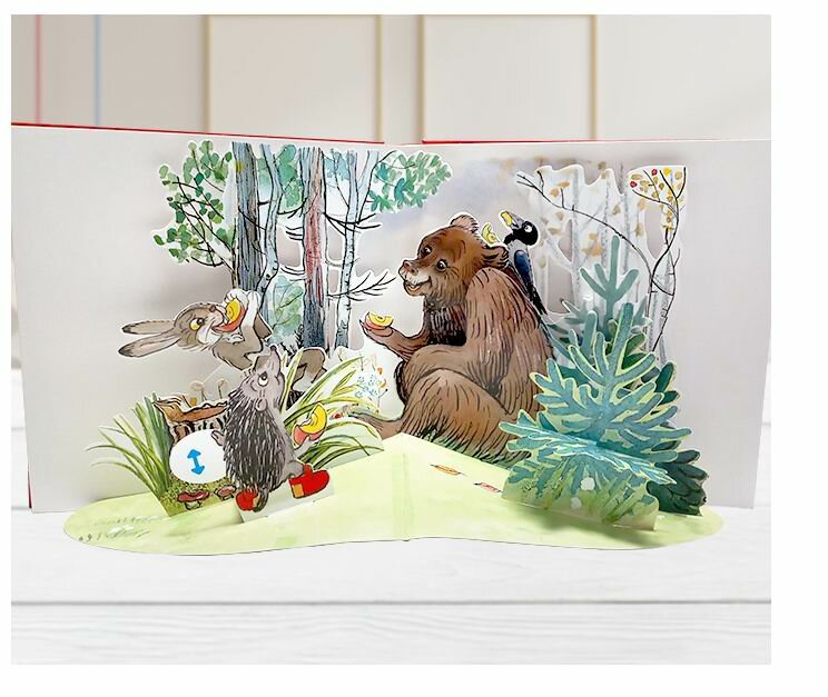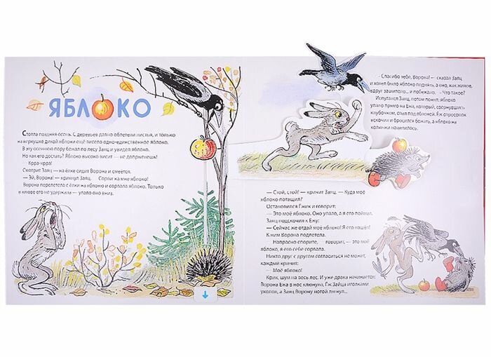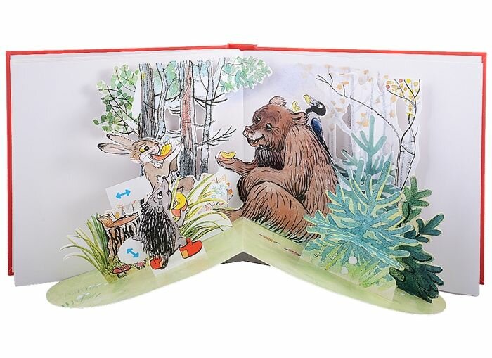 Книга разочаровала! Кроме отличных и хорошо знакомых иллюстраций Сутеева и неплохой печати, главные задумка - интерактивность не восхищает. Объёмных конструкций совсем немного и они очень плохо разворачиваются к читателю. Очень плохо книжка продумана конструктивно! Подвижные элементы очень однообразные и не всегда понятные.