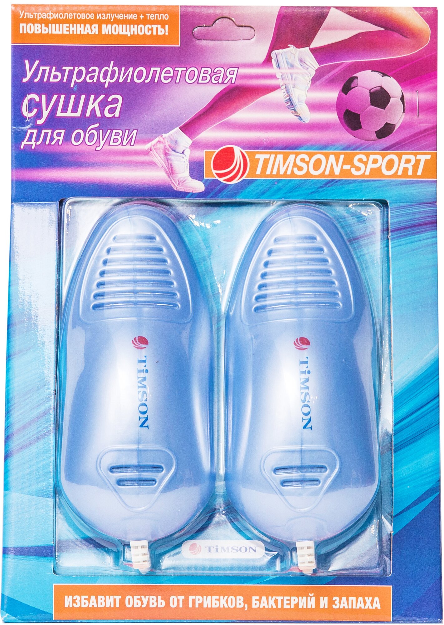 Принципиальной отличительной особенностью данной Ультрафиолетовой сушки для спортивной обуви «Тимсон» является тот факт, что противогрибковая и антибактериальная обработка производится практически в два раза быстрее благодаря усиленному действию ультрафиолетовых ламп, что принципиально важно для людей ведущих динамичный образ жизни.