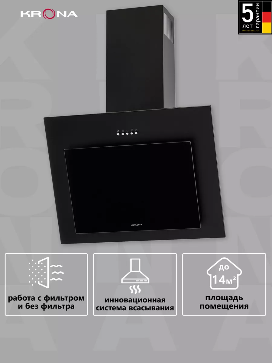 Каминная вытяжка Krona Fiona 600 PB белый, количество двигателей 1, режим работы отвод/циркуляция, кнопочное управление, алюминиевый жироулавливающий фильтр ()