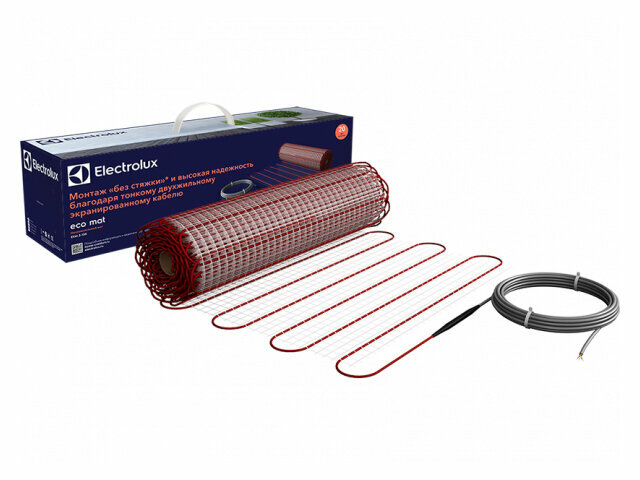 В этой серии нагревательных матов тонкий двухжильный нагревательный кабель надежно зафиксирован в современной текстильной основе, которая отлично впитывает раствор плиточного клея, образуя единую монолитную структуру без пузырьков воздуха.Муфта, соединяющая нагревательную часть мата и монтажный провод, имеет практически такой же диаметр, как нагревательный кабель: идеальный вариант для укладки с минимальным поднятием уровня пола. Для максимальной безопасности и длительной эксплуатации предусмотрена высококачественная двойная изоляция греющих жил, выдерживающая до 4000 В пробивного напряжения.Оптимальная мощность нагревательных матов Electrolux Eco Mat - 150 Вт/м2 способствует созданию максимально комфортного микроклимата в сухом или влажном помещении - там, где это необходимо.
