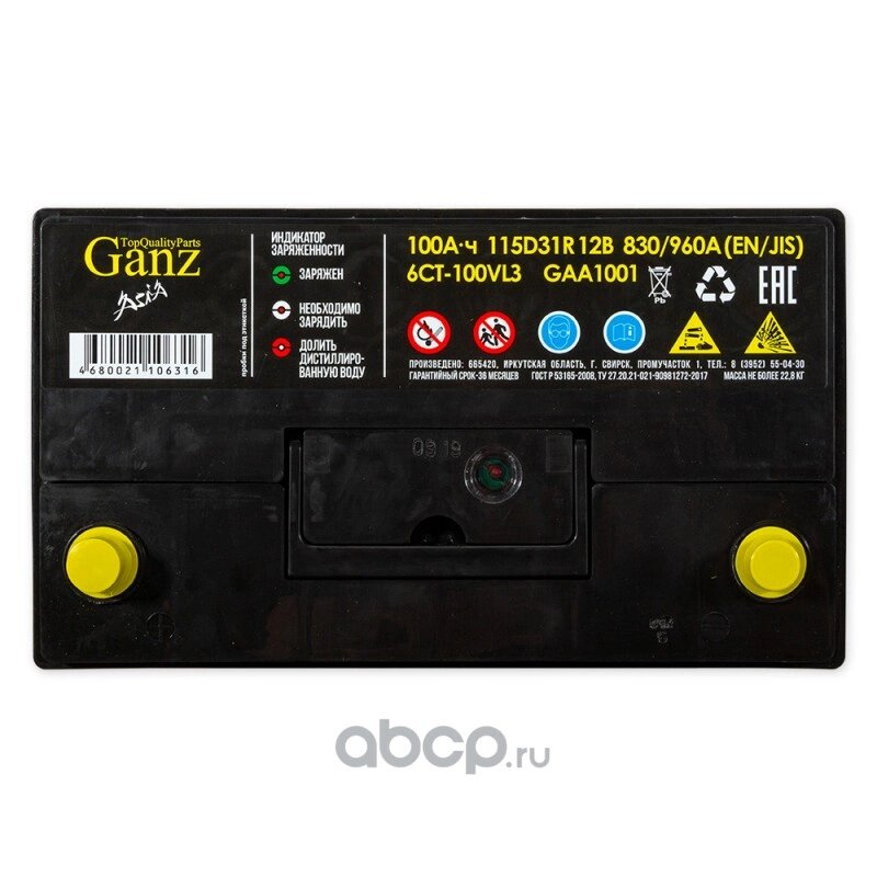 Аккумулятор автомобильный GANZ 100Ач 830A GANZA 100-3-L