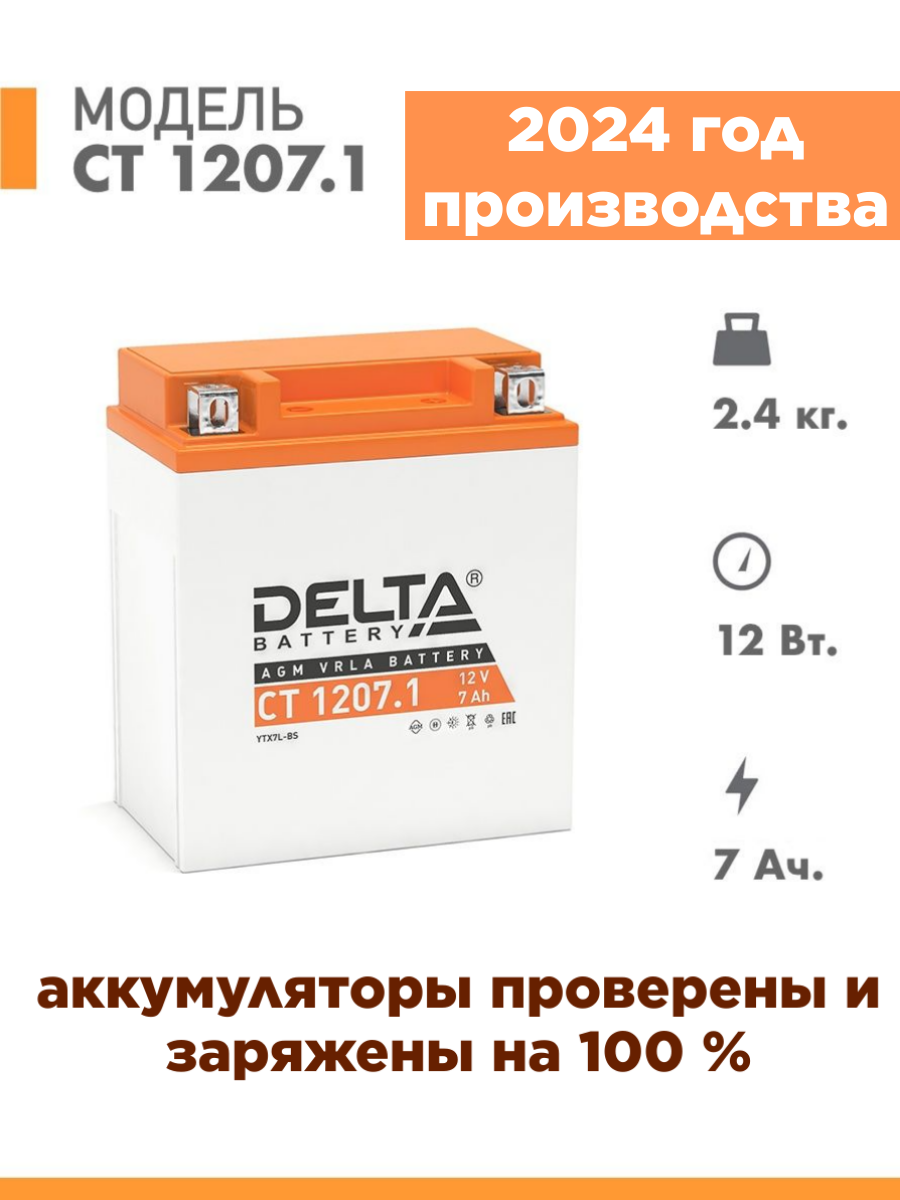 На сегодняшний день товар «Аккумулятор для мотоциклов DELTA BATTERY 7Ач 100A CT 1207.1» можно купить с кешбеком в 1 магазине: Яндекс.Маркет