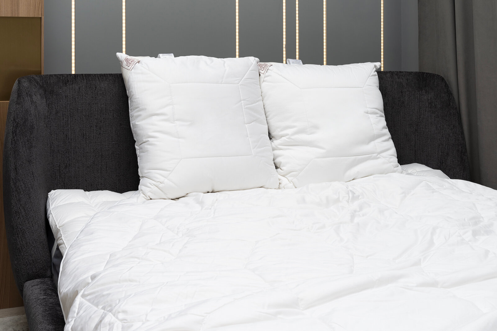 Подушки состоят из двух элементов на молнии: стеганого чехла и внутренней подушки. Это позволяет регулировать количество наполнителя внутренней камеры, чтобы каждый пользователь имел возможность создать для себя изделие с персональными параметрами упругости.