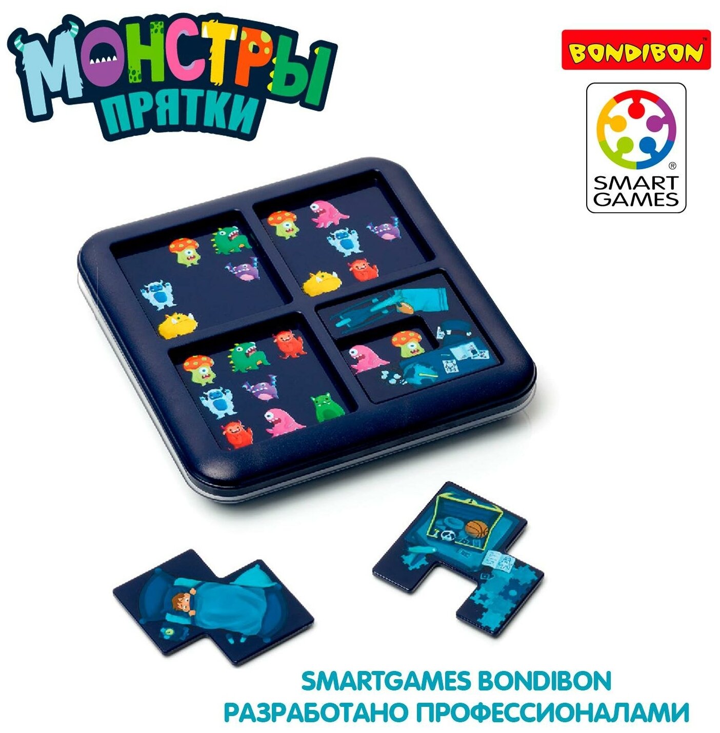 Игра «Монстры-прятки» от Бондибон познакомит Вас со смешными монстрами-страшилками и научит Вас прятать их на игровом поле так, чтобы никто не нашел. Заодно Вы прокачаете логику, интеллект и пространственное мышление. И все это весело и в настоящей реальности, где дружно работают руки и голова! Без гаджетов! Ведь это более здоровый способ практиковать сосредоточенность и концентрацию.