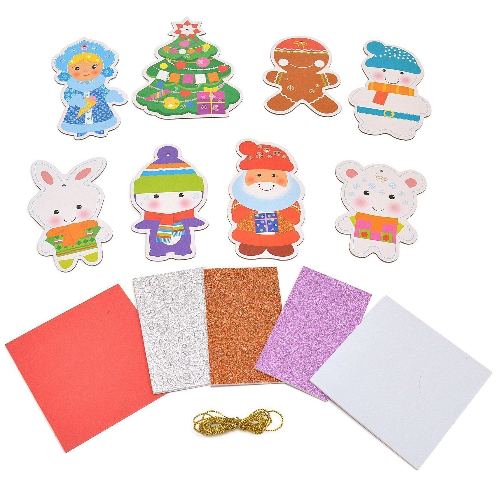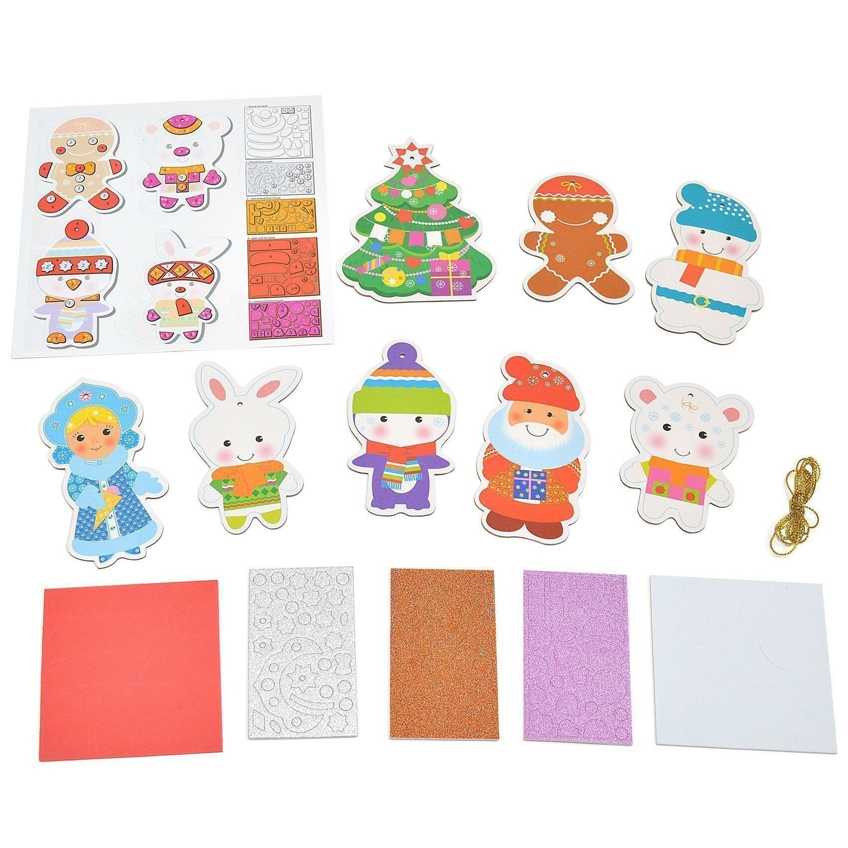В комплекте: 8 фигурок из плотного картона, детали из мягкого пластика ЭВА (матовые и блестящие) на самоклеящейся основе, декоративная нить, листовка.