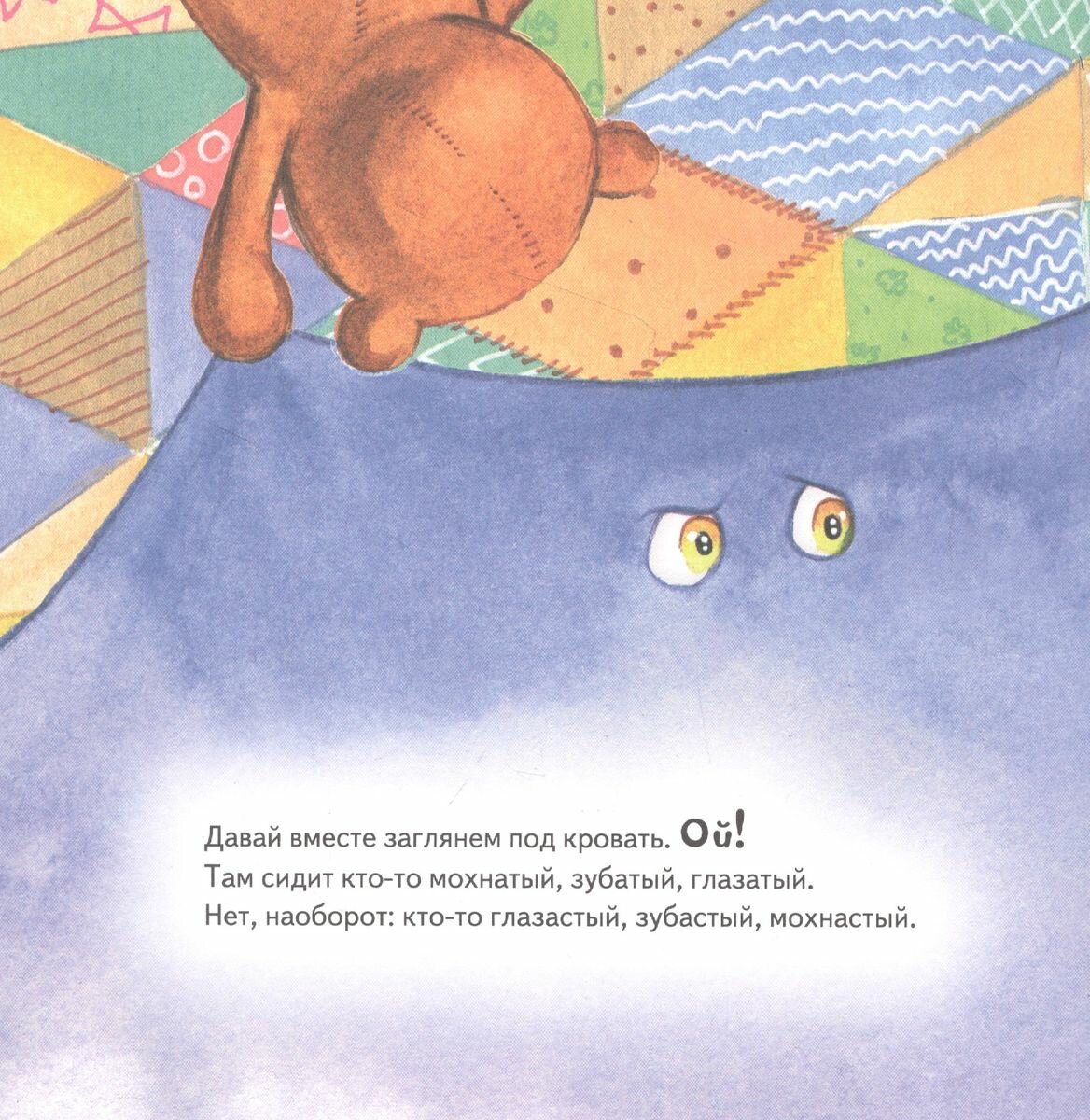Тс-с-с! Кажется, под твоей кроватью кто-то есть. И этот кто-то что-то ест! Такой мохнатый, зубастый, глазастый! Смотри, это же Злюка! Неужели она хочет тебя напугать? Не бойся - она сама тебя боится! Давай с ней подружимся - погладим её по спинке, пощекочем, поиграем в прятки, а потом убаюкаем и уложим спать.