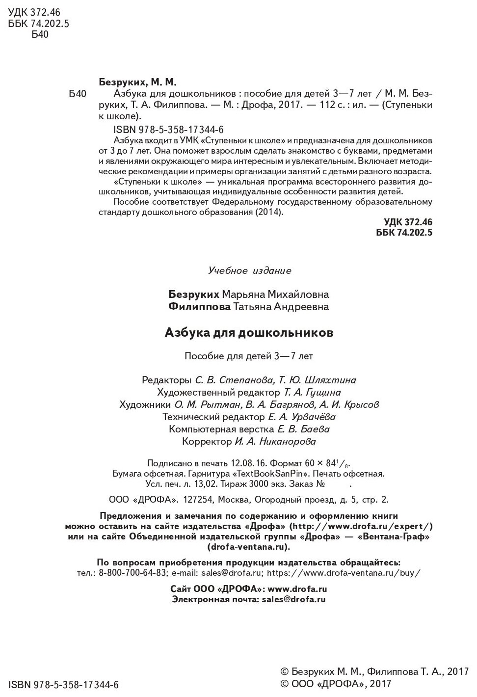 Сервис сравнения цен СкидкаГИД предлагает сравнить цены на товар «Книга: Азбука для дошкольников Пособие для детей 3-7 лет (Безруких Марьяна Михайловна, Филиппова Татьяна Андреевна); Просвещение/Дрофа, 2021»