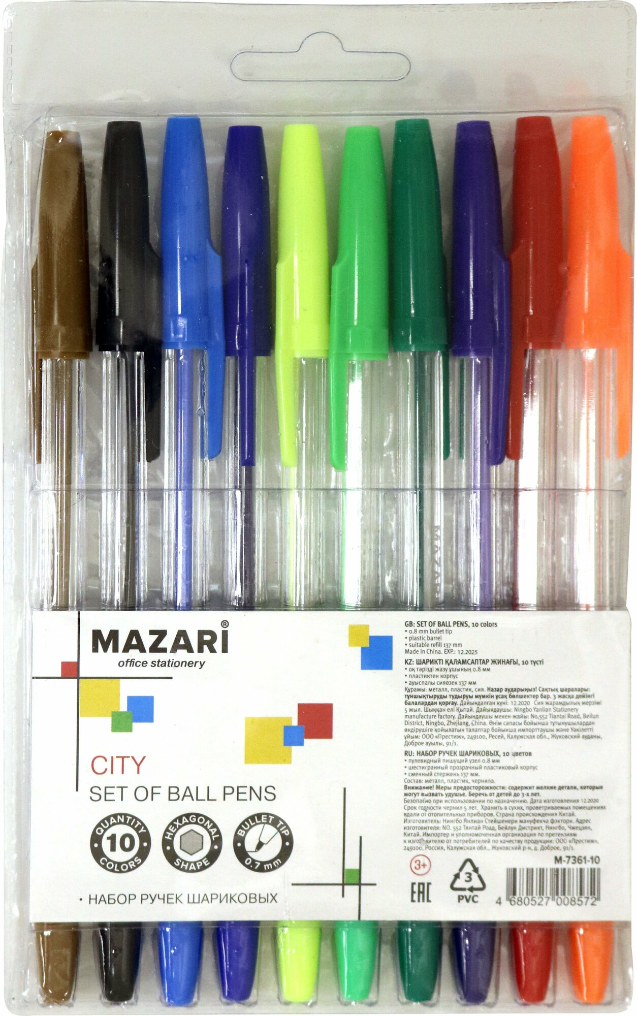 Набор шар. ручек 10цв CITY M-7361-10 MAZARI