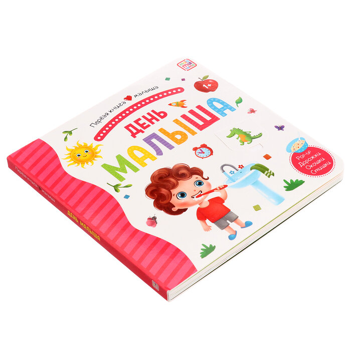 Книга "День малыша" из серии "Первая книга малыша" в интересной и простой форме рассказывает крохам, из чего состоит режим дня, когда следует надевать шапку, а когда – кушать кашу. Страницы книги созданы специально для развития тактильного восприятия ребенка, его словарного запаса и познавательных умений. Под обложкой скрываются красочные и крупные иллюстрации, окошки-сюрпризы, дорожки для пальчиков и весёлые стихи. Гораздо веселее и интереснее ложиться спать или отправляться на прогулку, если славные ребята из книги поступают также!