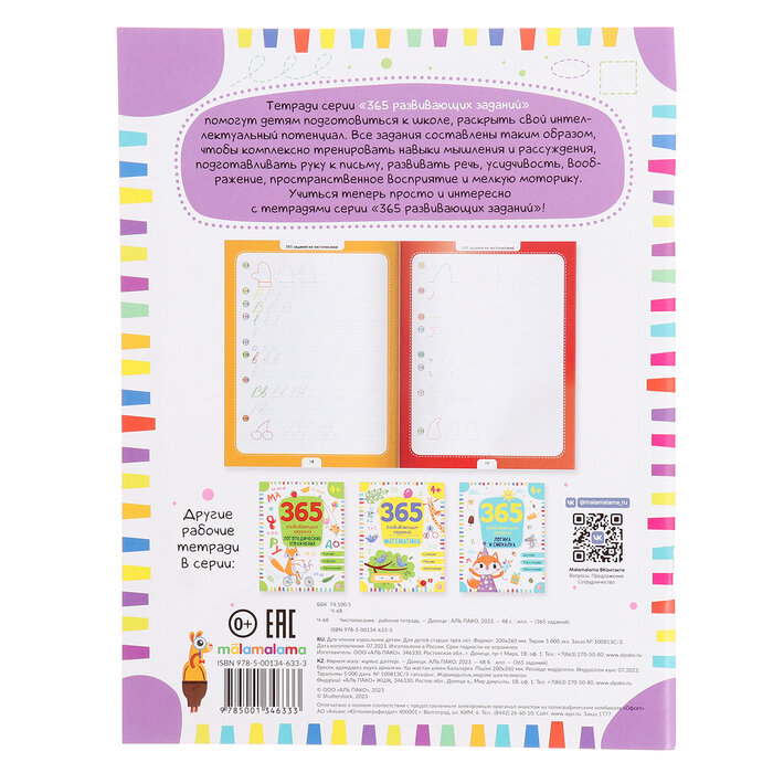 | Наименование модели | Книга Malamalama 365 развивающих заданий. Чистописание |