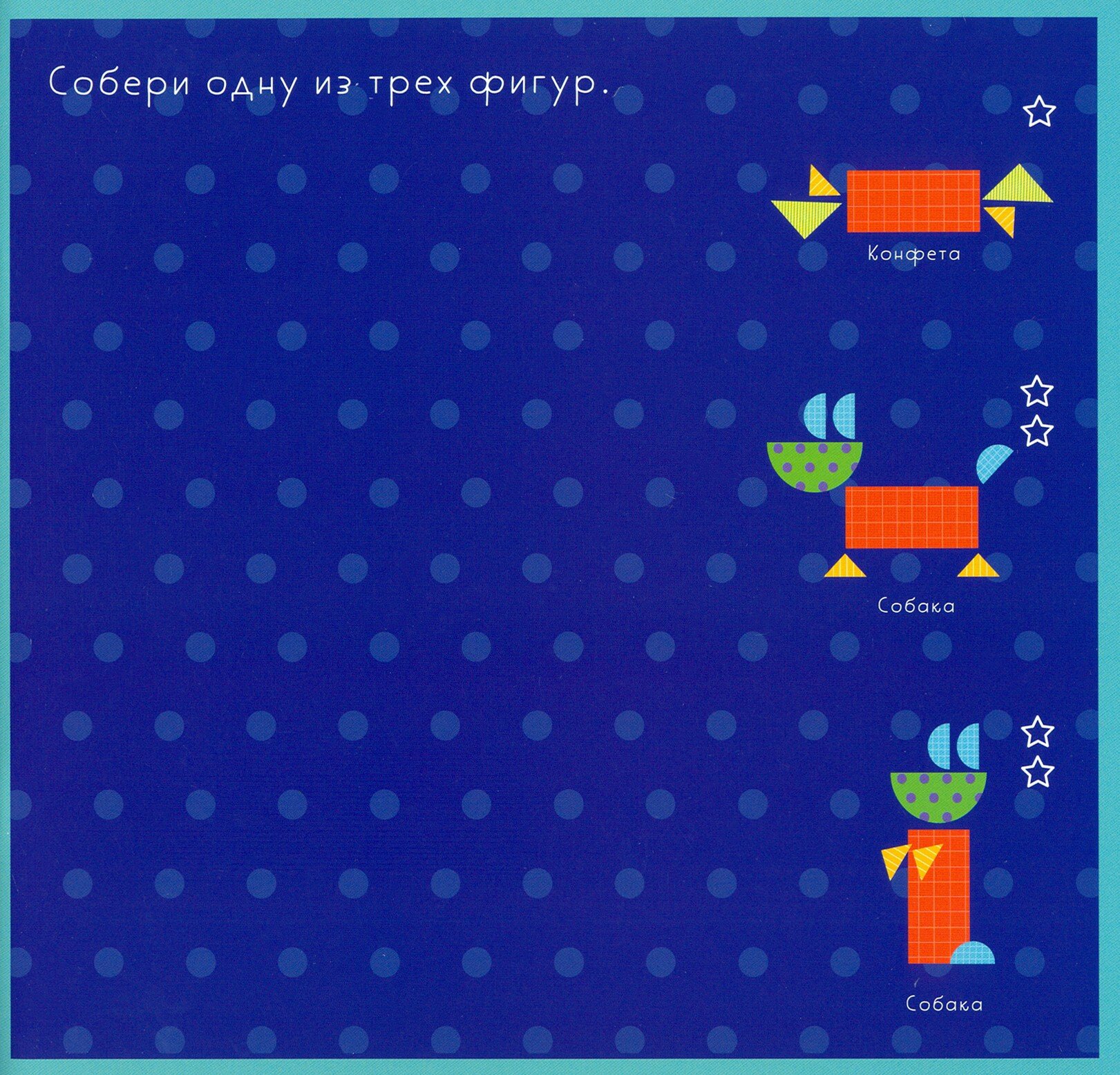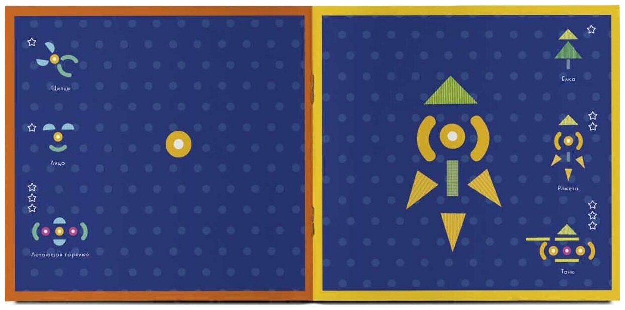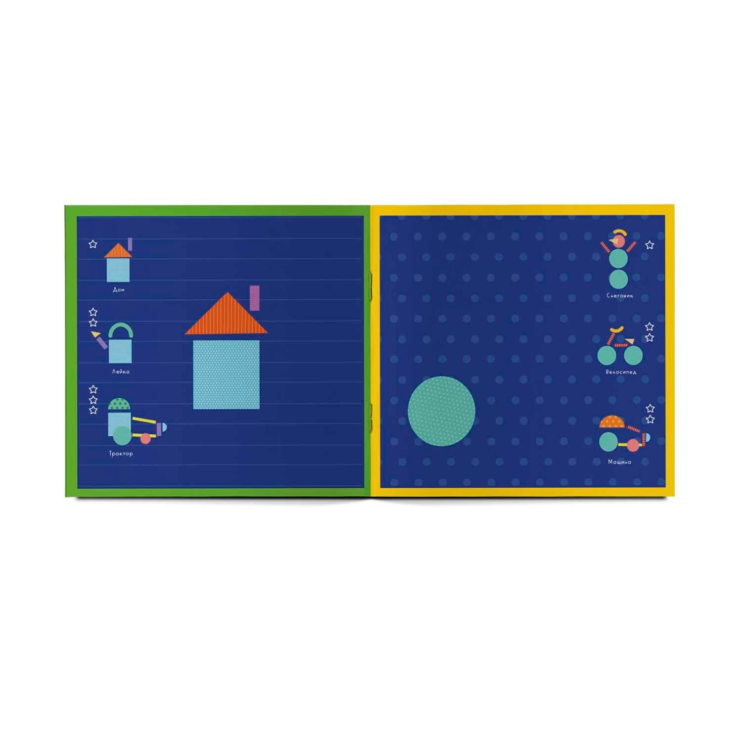 В этом занимательном альбоме-конструкторе вас ждут 36 чертежей разной степени сложности: попробуйте из разноцветных геометрических фигур собрать улитку, цветок, велосипед или даже морскую черепаху!