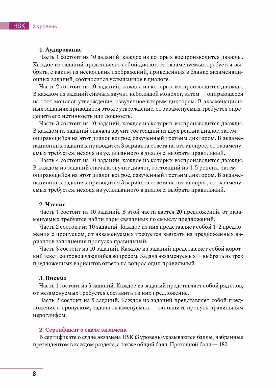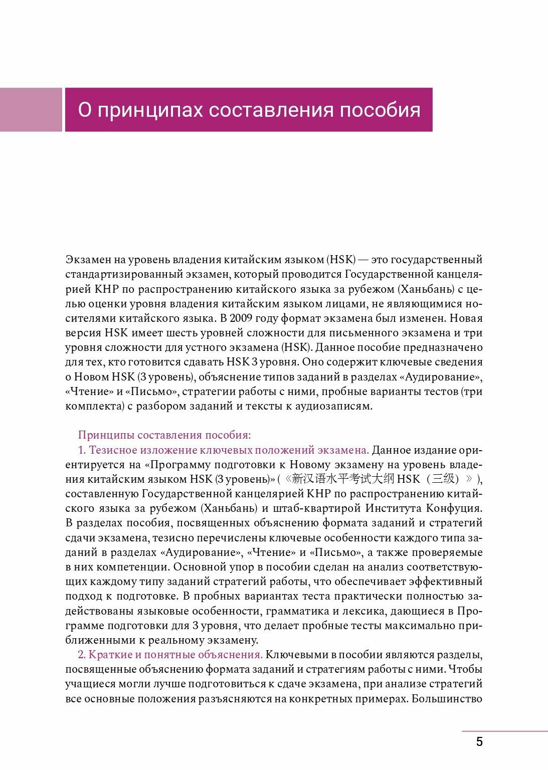 Данное пособие - универсальное руководство по подготовке к экзамену HSK 3 уровня. Здесь вы найдете полноценный разбор всех форматов заданий, которые могут встретиться на экзамене, и понятные стратегии работы с ними - на конкретных примерах. В пособие также входят три пробных варианта экзамена с ответами и объяснениями решений.